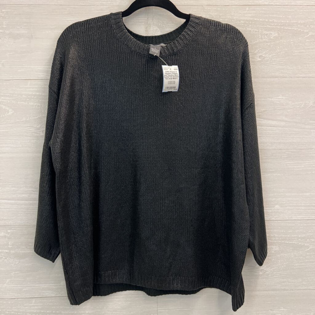 Chelsea and Theodore Black Coated Knit Sweater Top Large