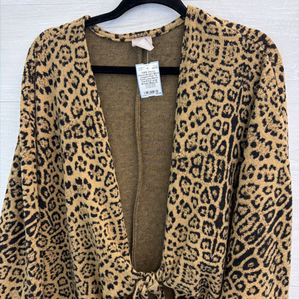 Chicos Brown/ Black Leopard Print Tie Front Long Sleeve Top Extra Large
