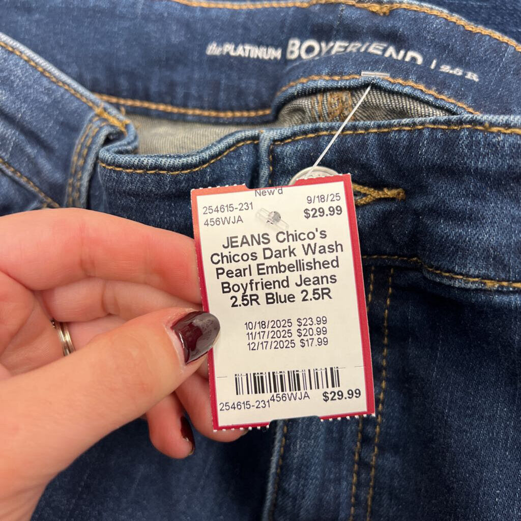 Chicos Dark Wash Pearl Embellished Boyfriend Jeans 2.5R