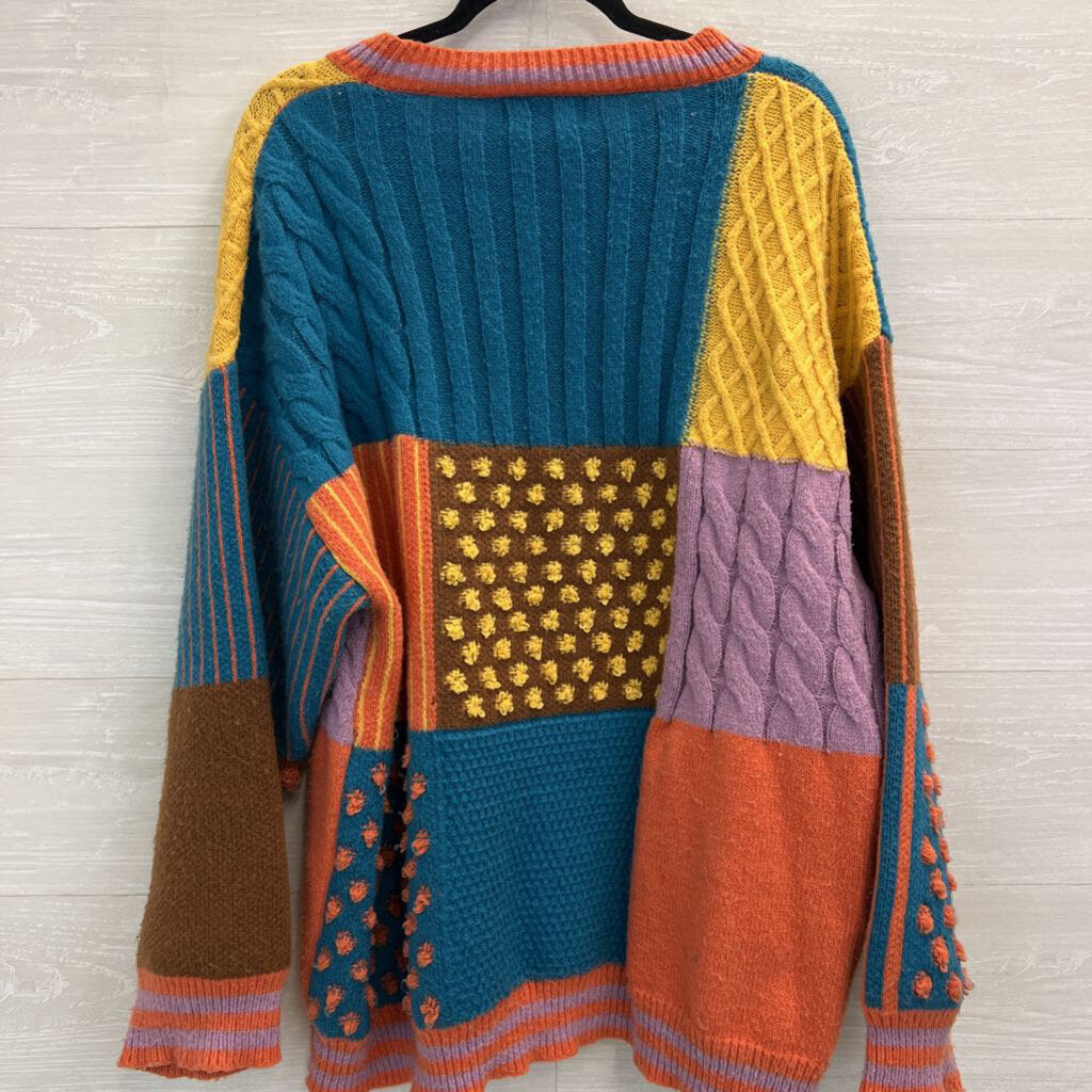 Cider Multi Color Patchwork Knit Long Sleeve Sweater 2XL