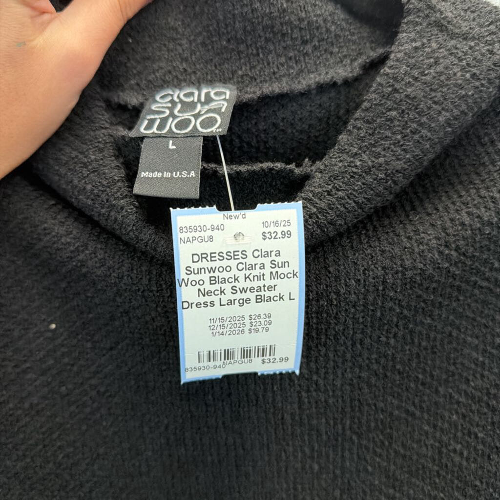 Clara Sun Woo Black Knit Mock Neck Sweater Dress Large