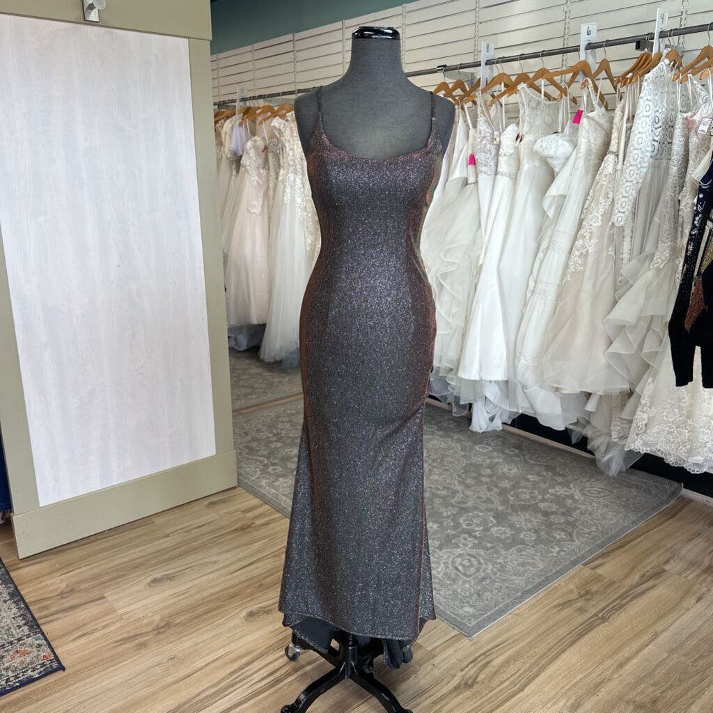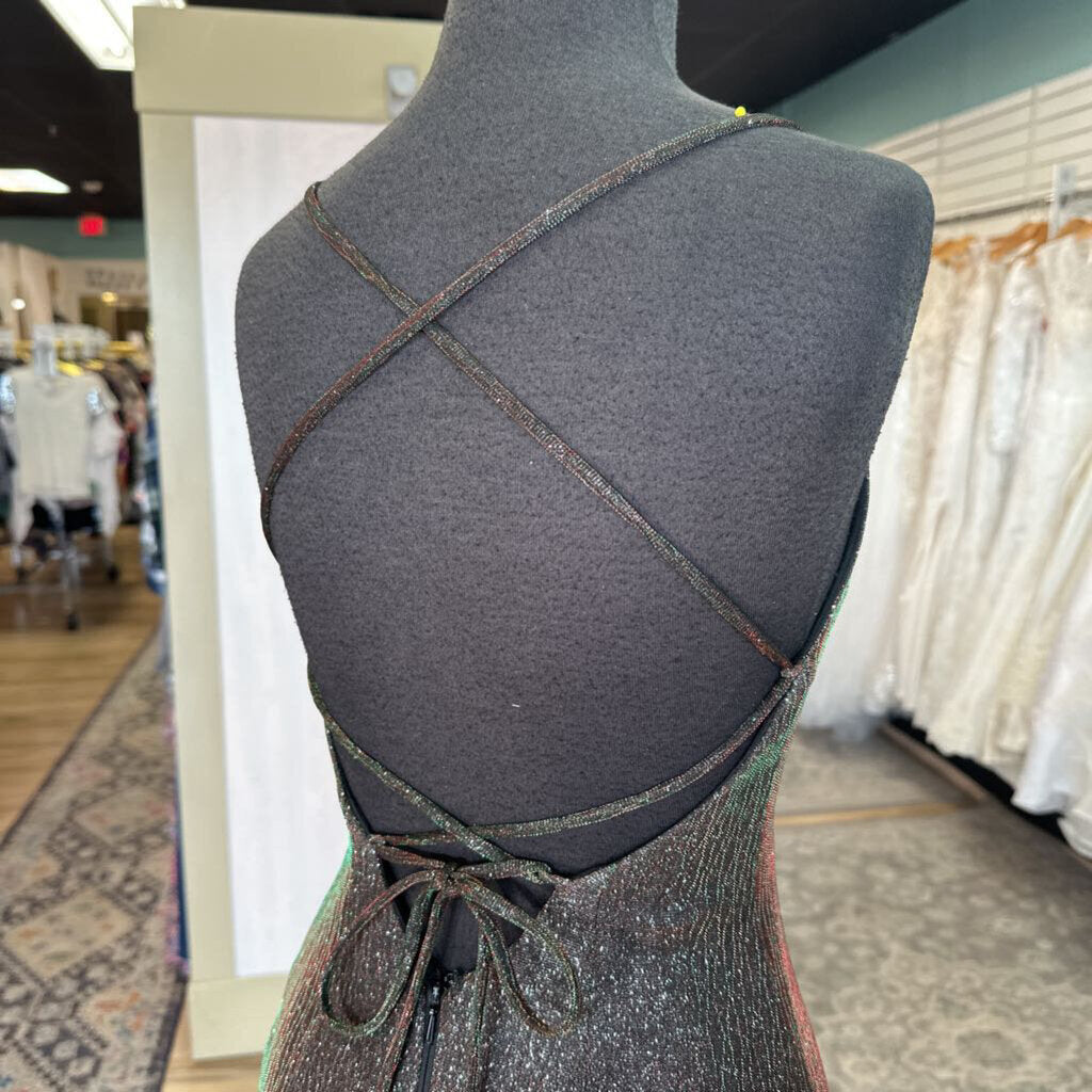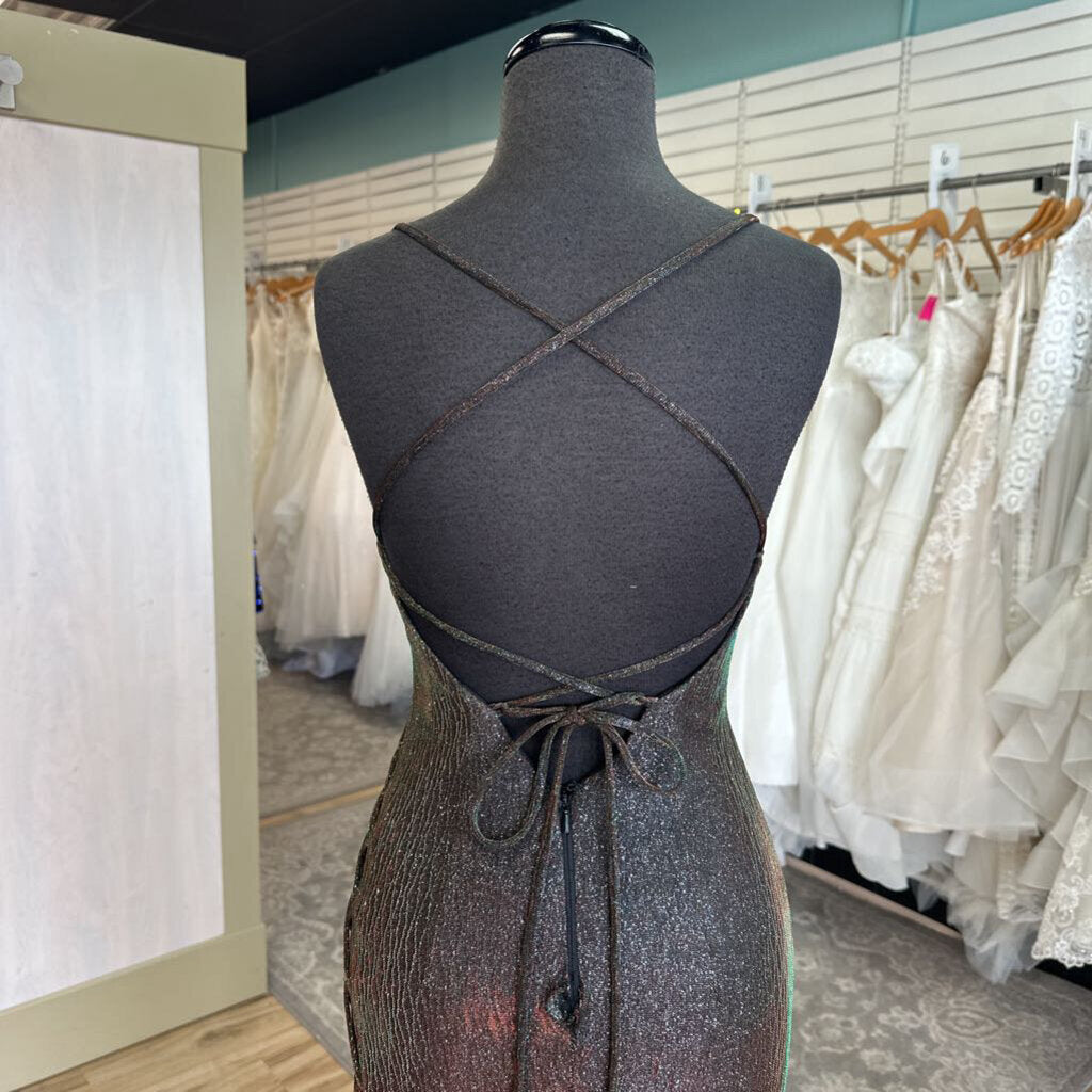 Clarisse Black/ Multi Iridescent Shimmer Lace Up Detail Long Formal Dress 2