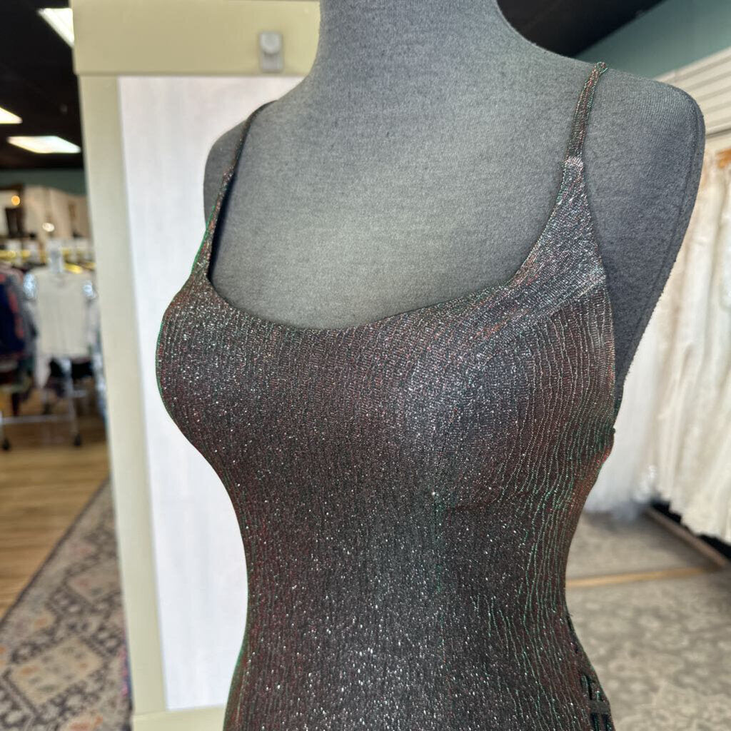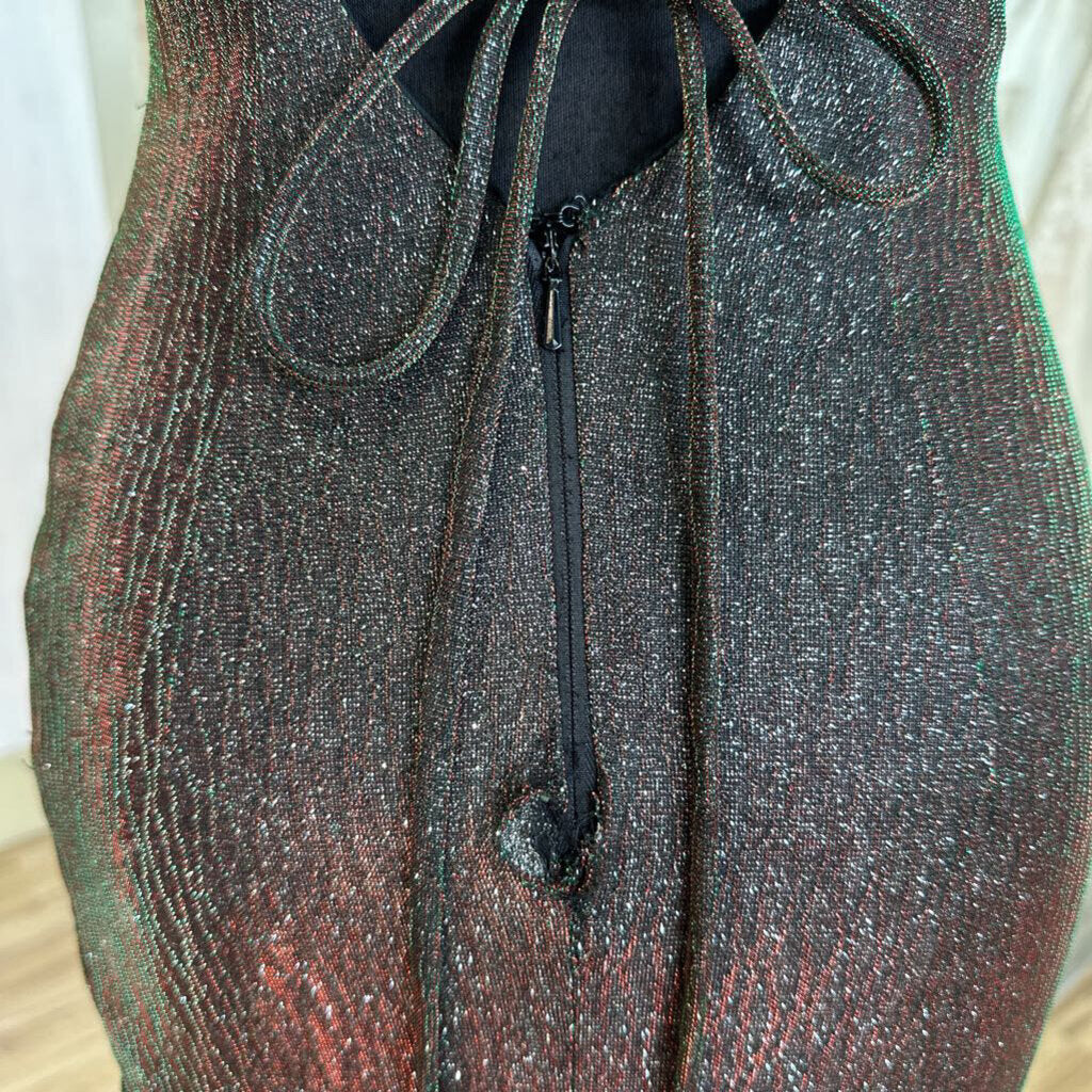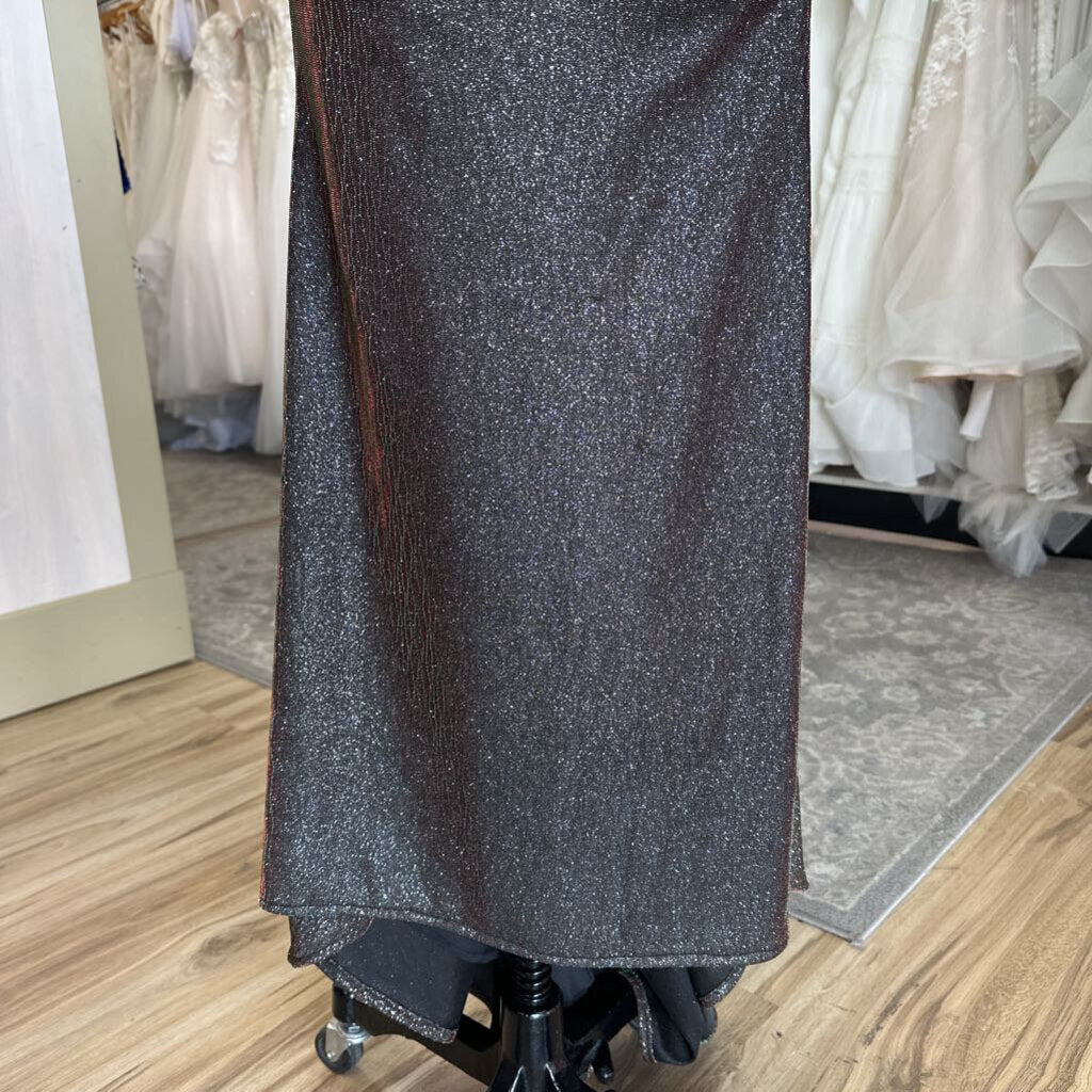 Clarisse Black/ Multi Iridescent Shimmer Lace Up Detail Long Formal Dress 2