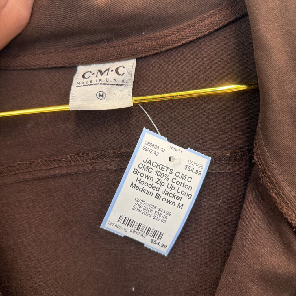 CMC 100% Cotton Brown Zip Up Long Hooded Jacket Medium