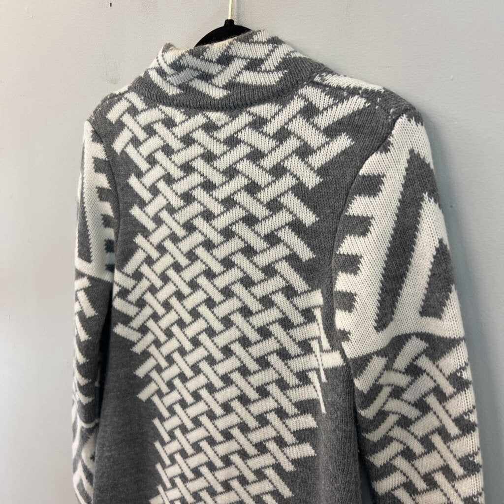 Cocogio Grey/ White Print Knit Long Cardigan Sweater Small