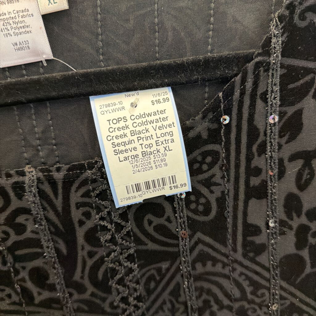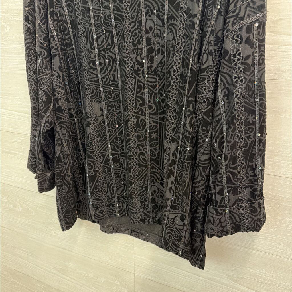 Coldwater Creek Black Velvet Sequin Print Long Sleeve Top Extra Large