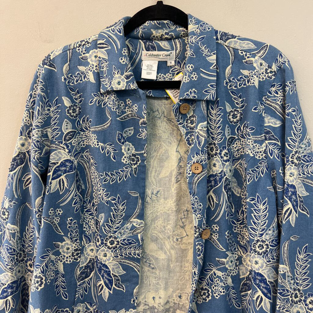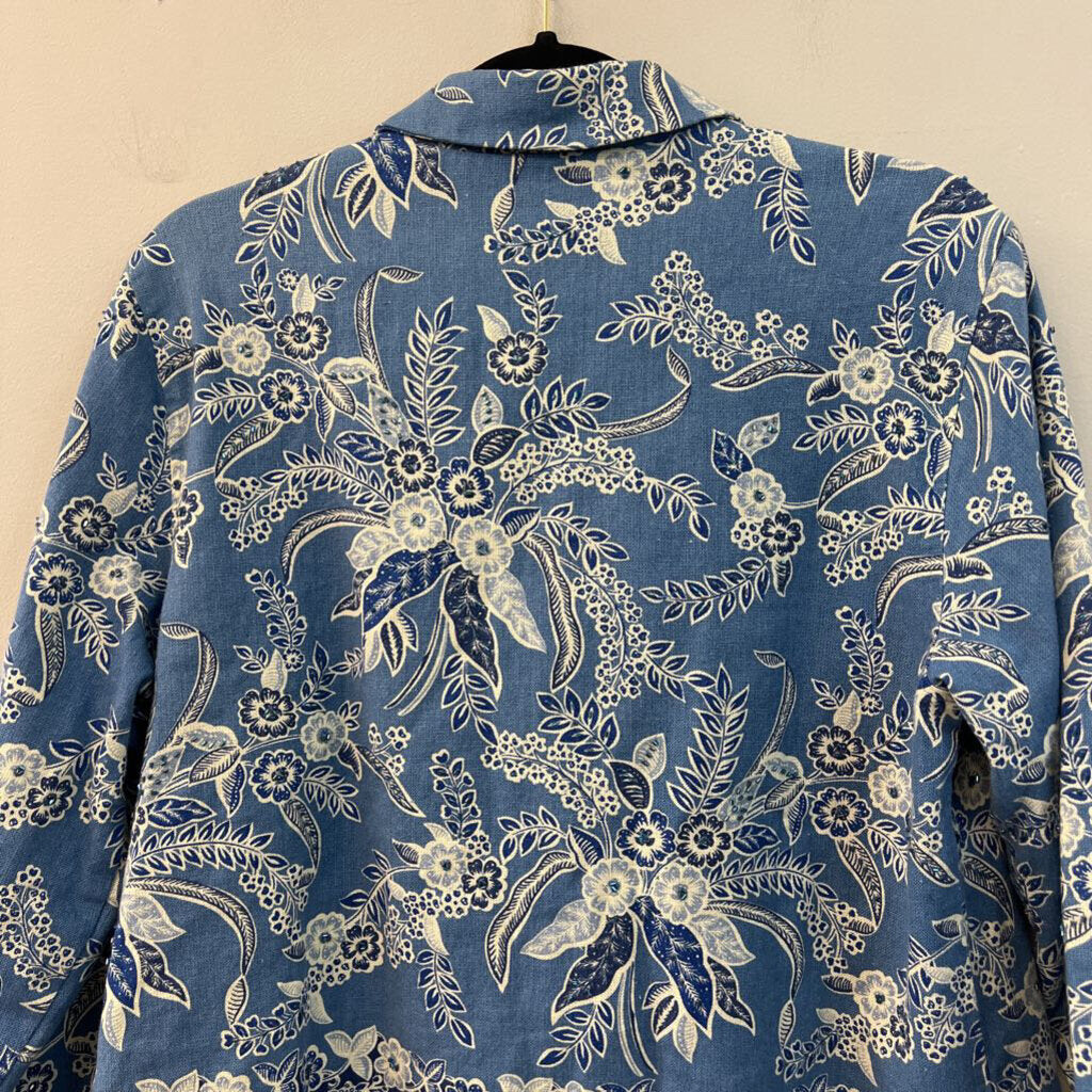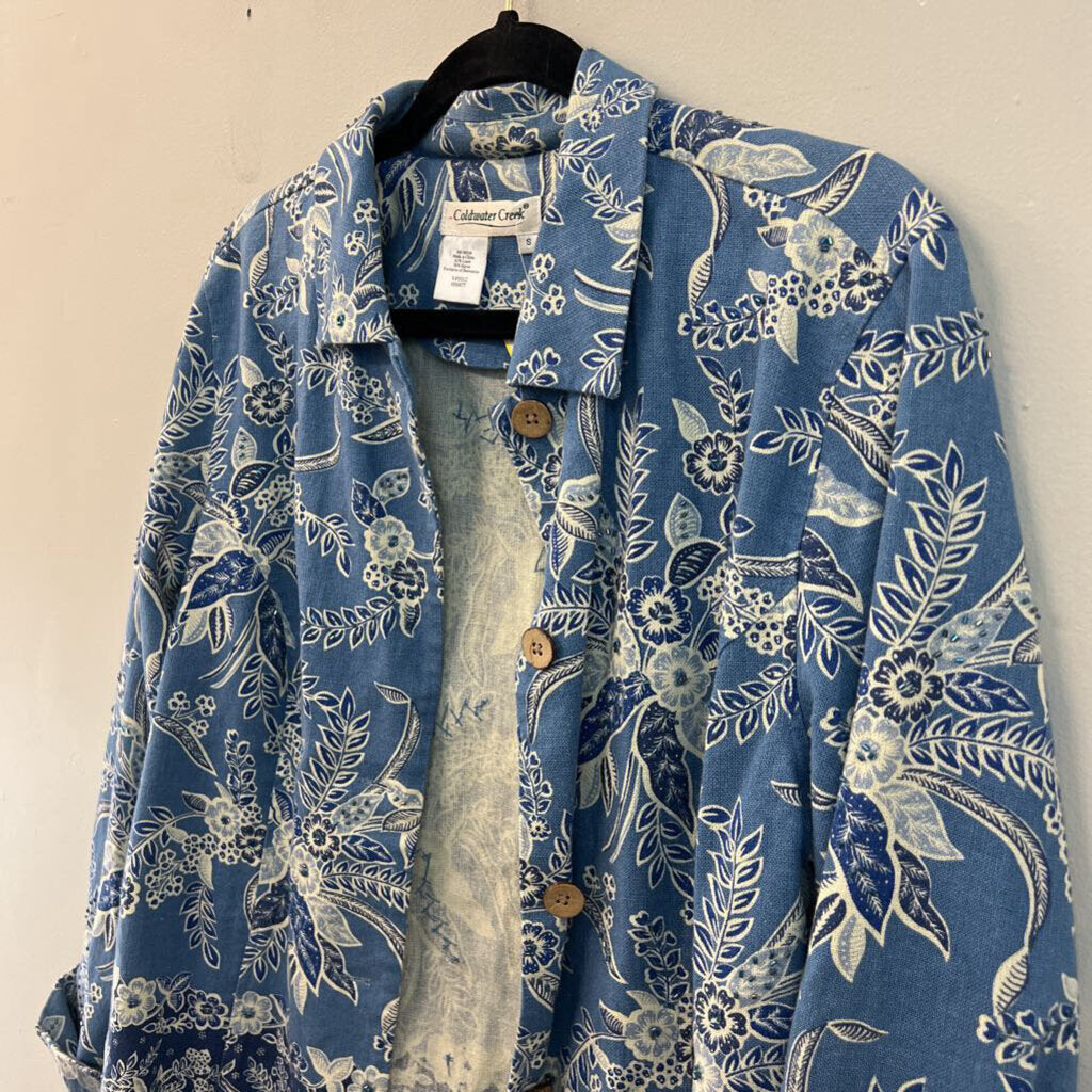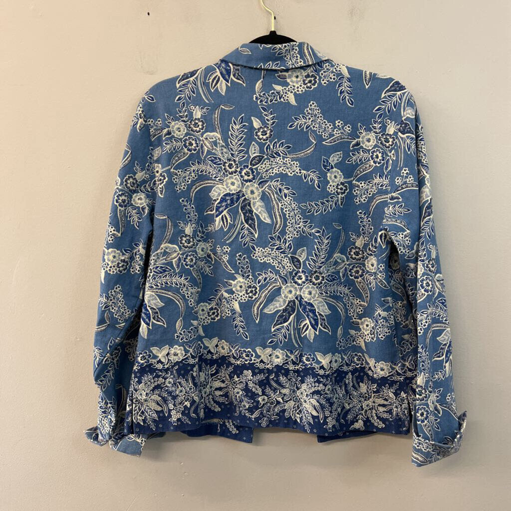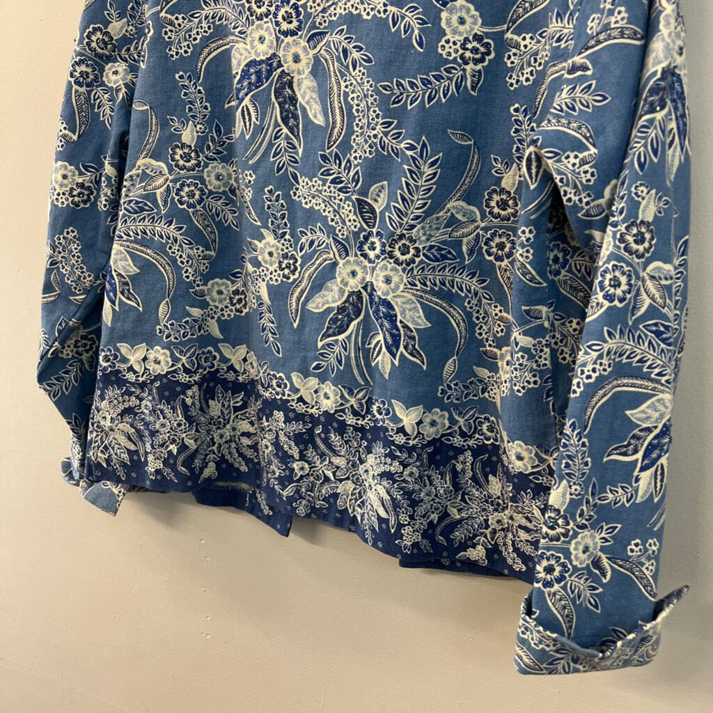 Coldwater Creek Blue Print Embellished Long Sleeve Top Small