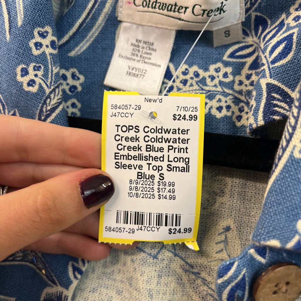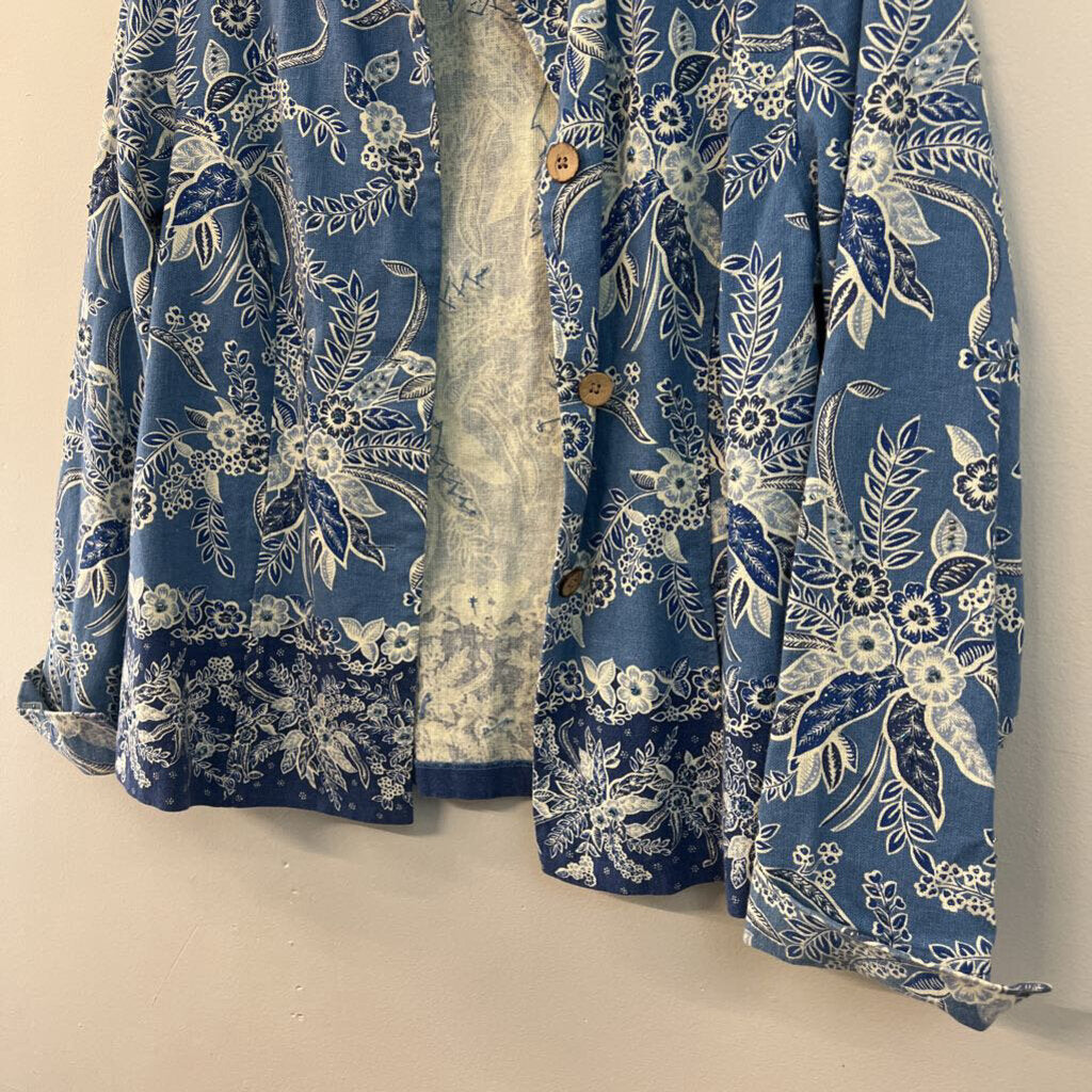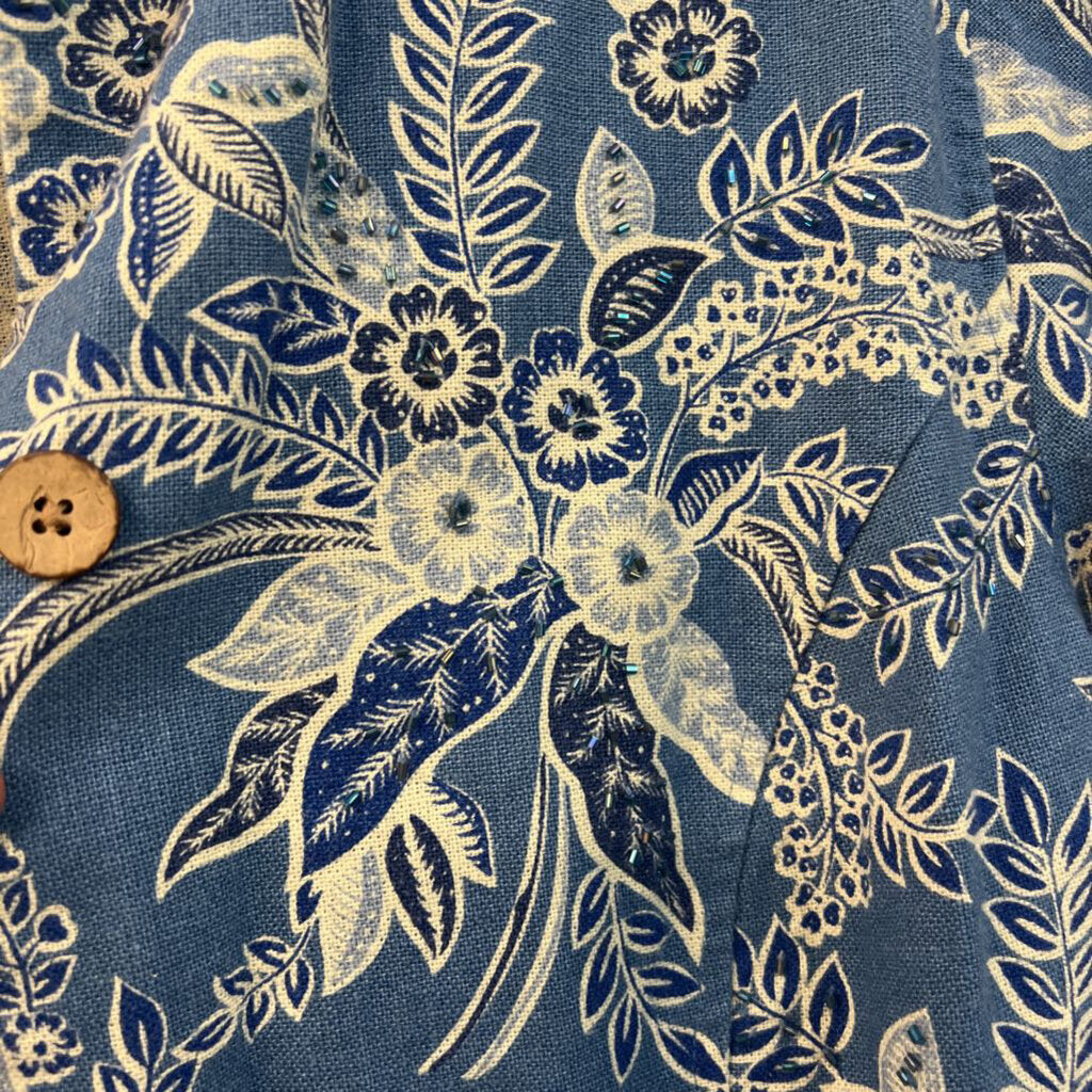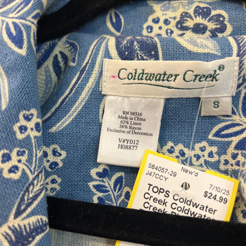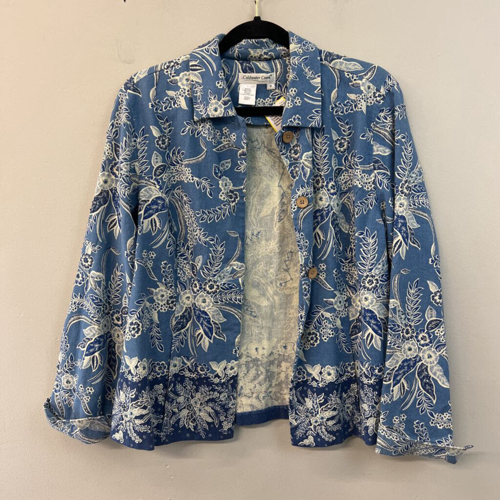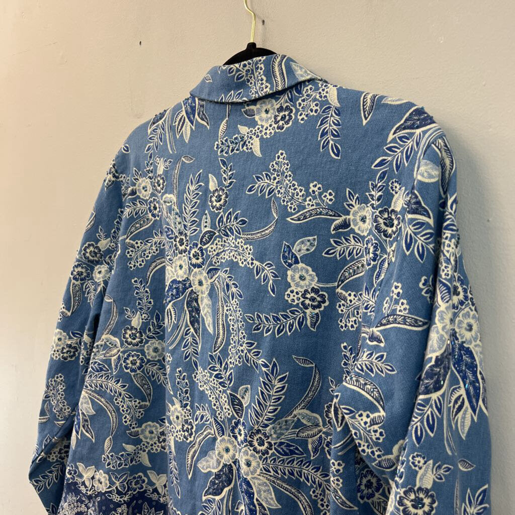 Coldwater Creek Blue Print Embellished Long Sleeve Top Small
