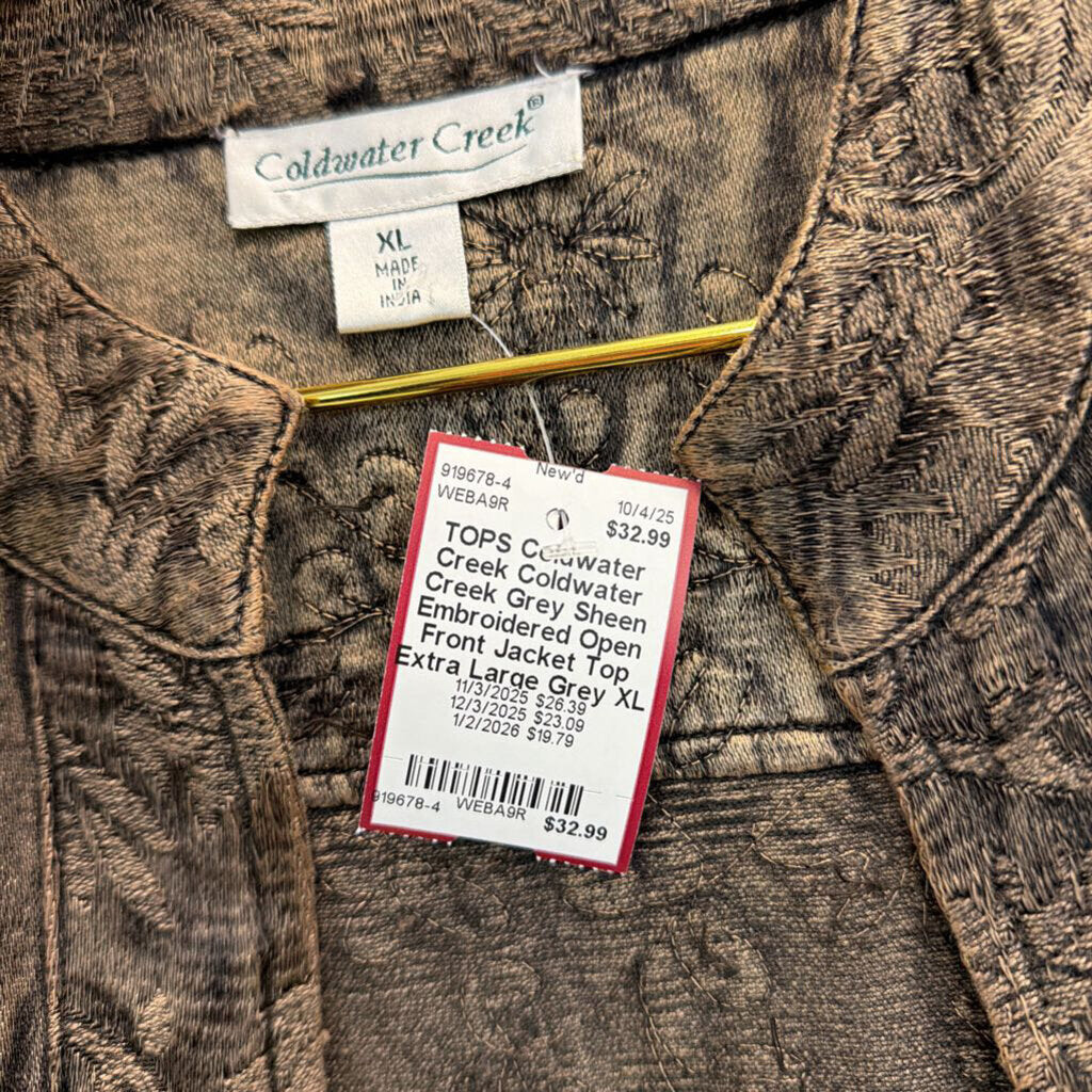 Coldwater Creek Grey Sheen Embroidered Open Front Jacket Top Extra Large
