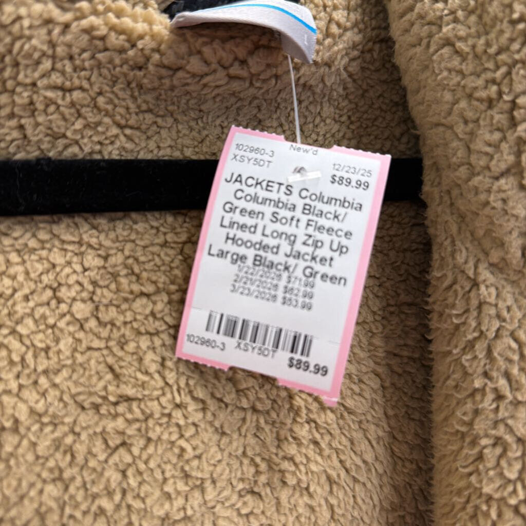 Columbia Black/ Green Soft Fleece Lined Long Zip Up Hooded Jacket Large