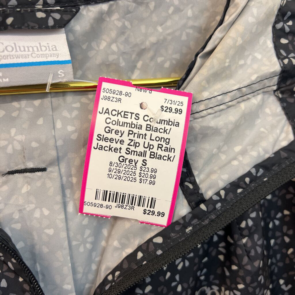 Columbia Black/ Grey Print Long Sleeve Zip Up Rain Jacket Small