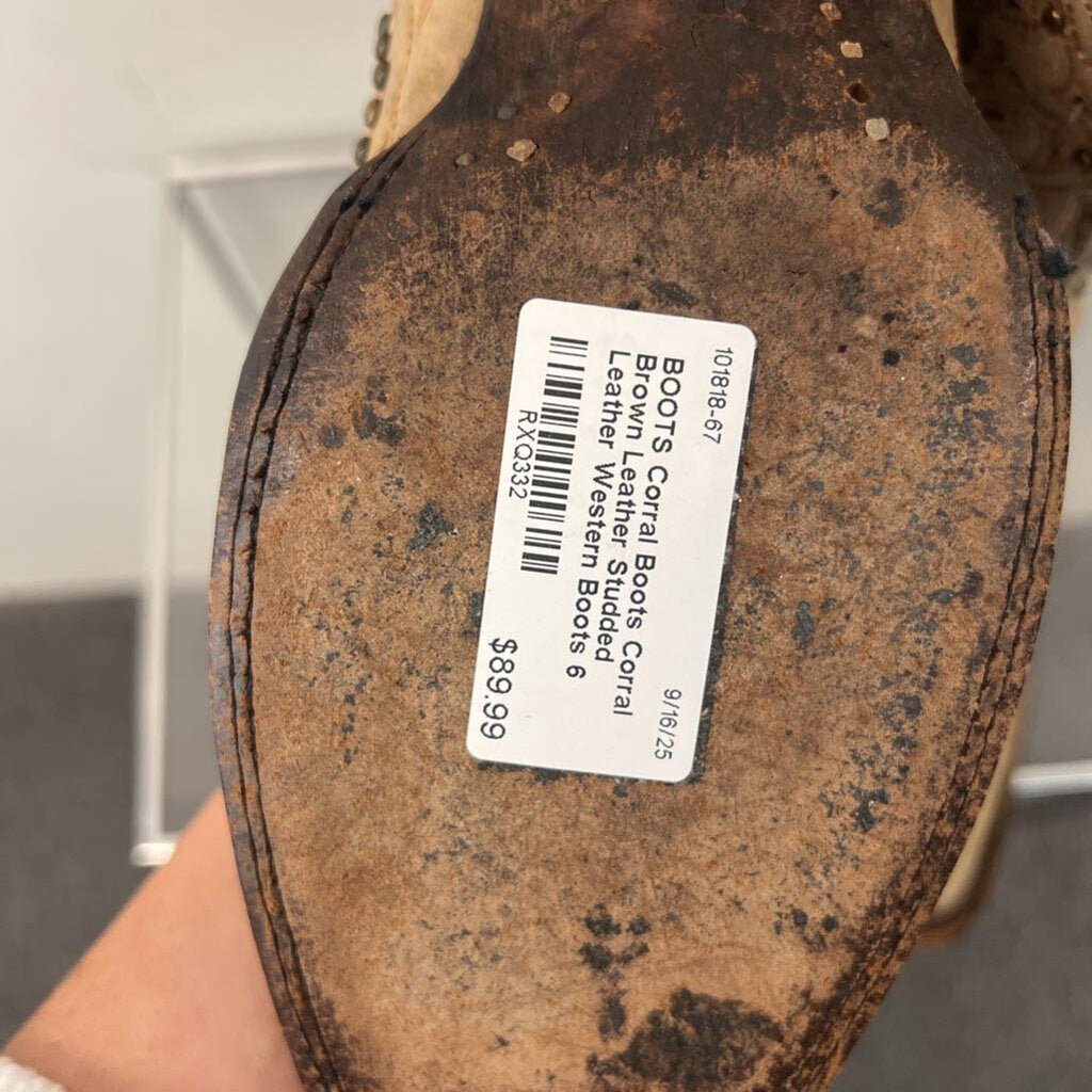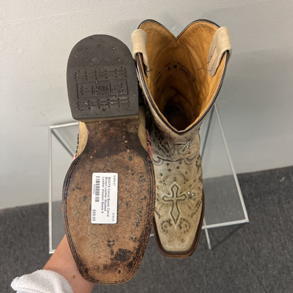 Corral Brown Leather Studded Leather Western Boots 6