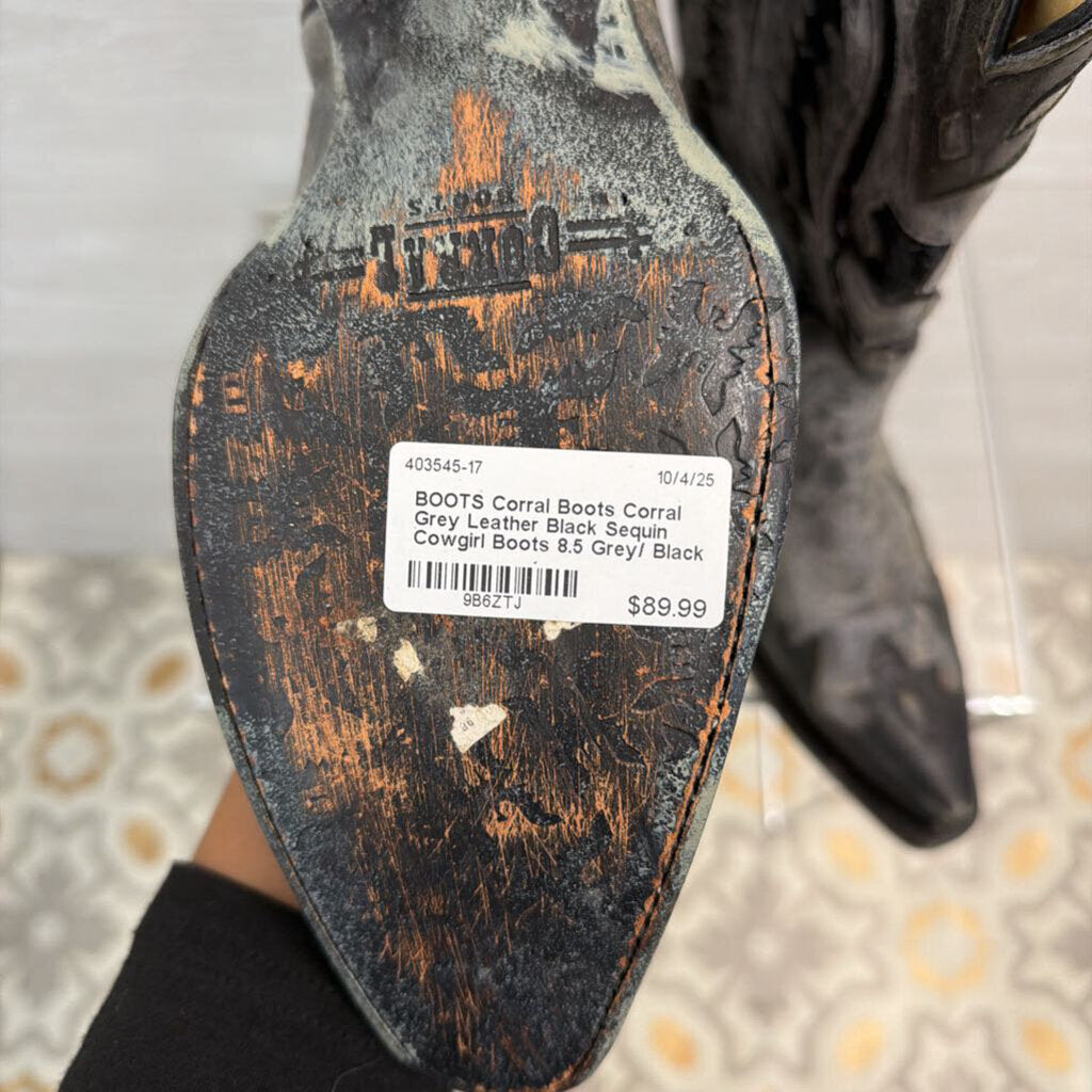 Corral Grey Leather Black Sequin Cowgirl Boots 8.5