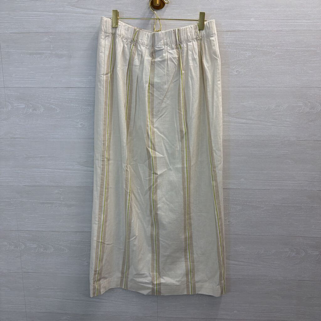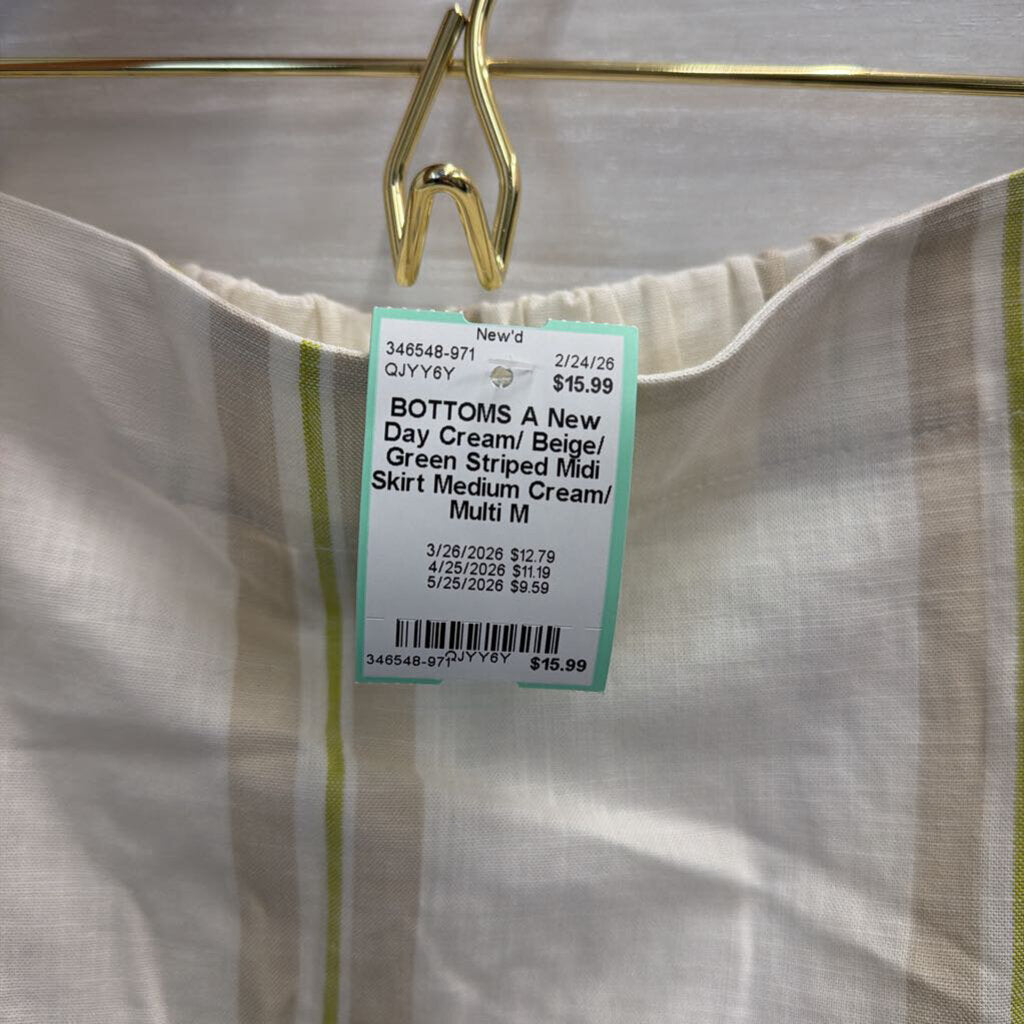 Cream/ Beige/ Green Striped Midi Skirt Medium