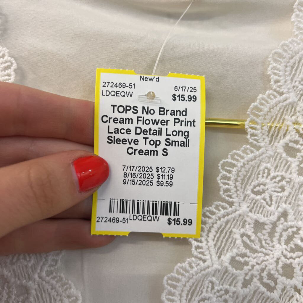 Cream Flower Print Lace Detail Long Sleeve Top Small