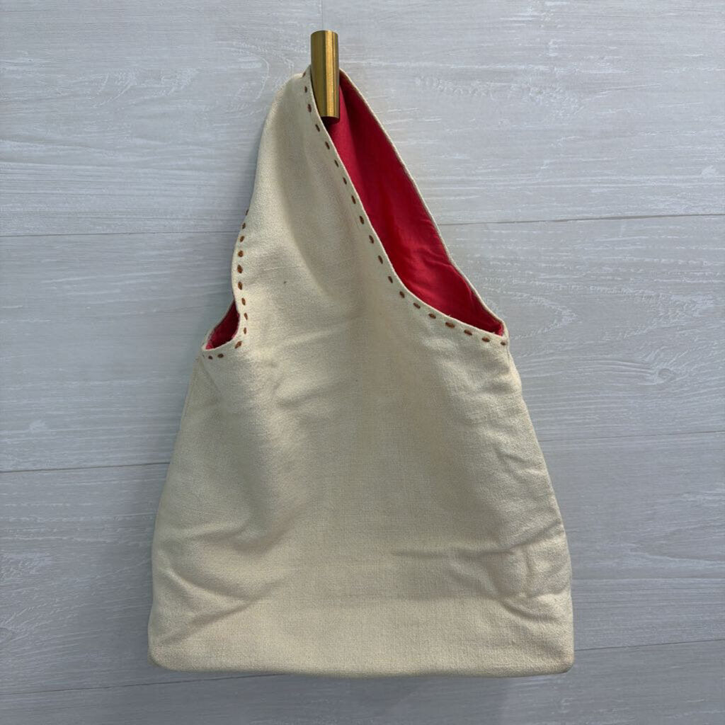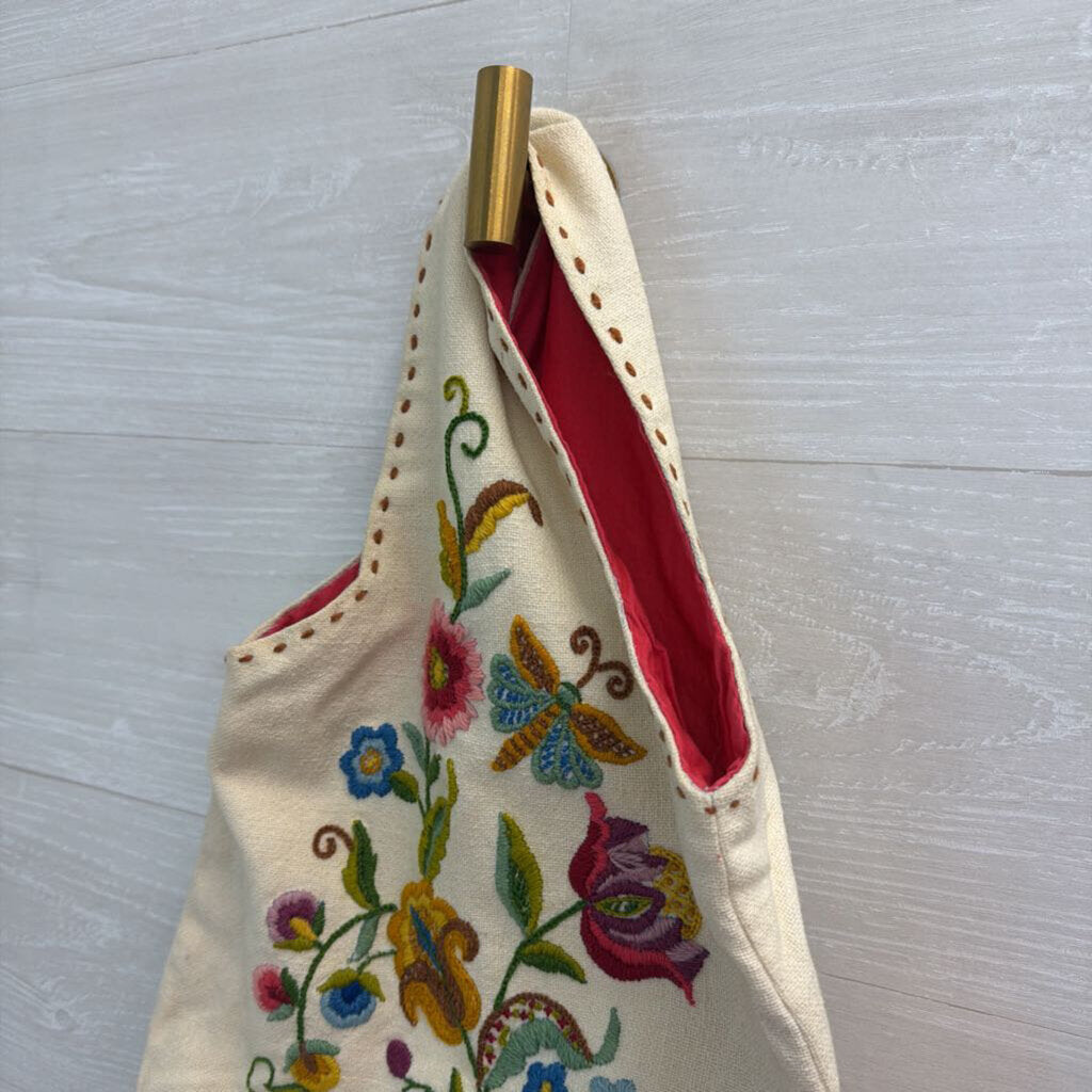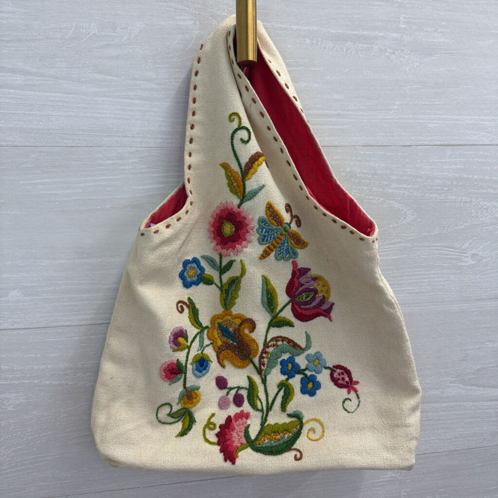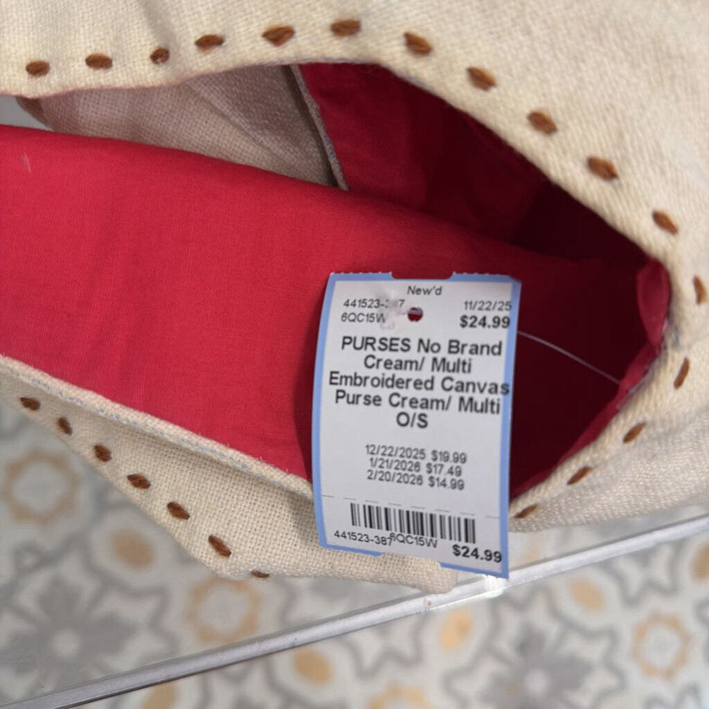 Cream/ Multi Embroidered Canvas Purse