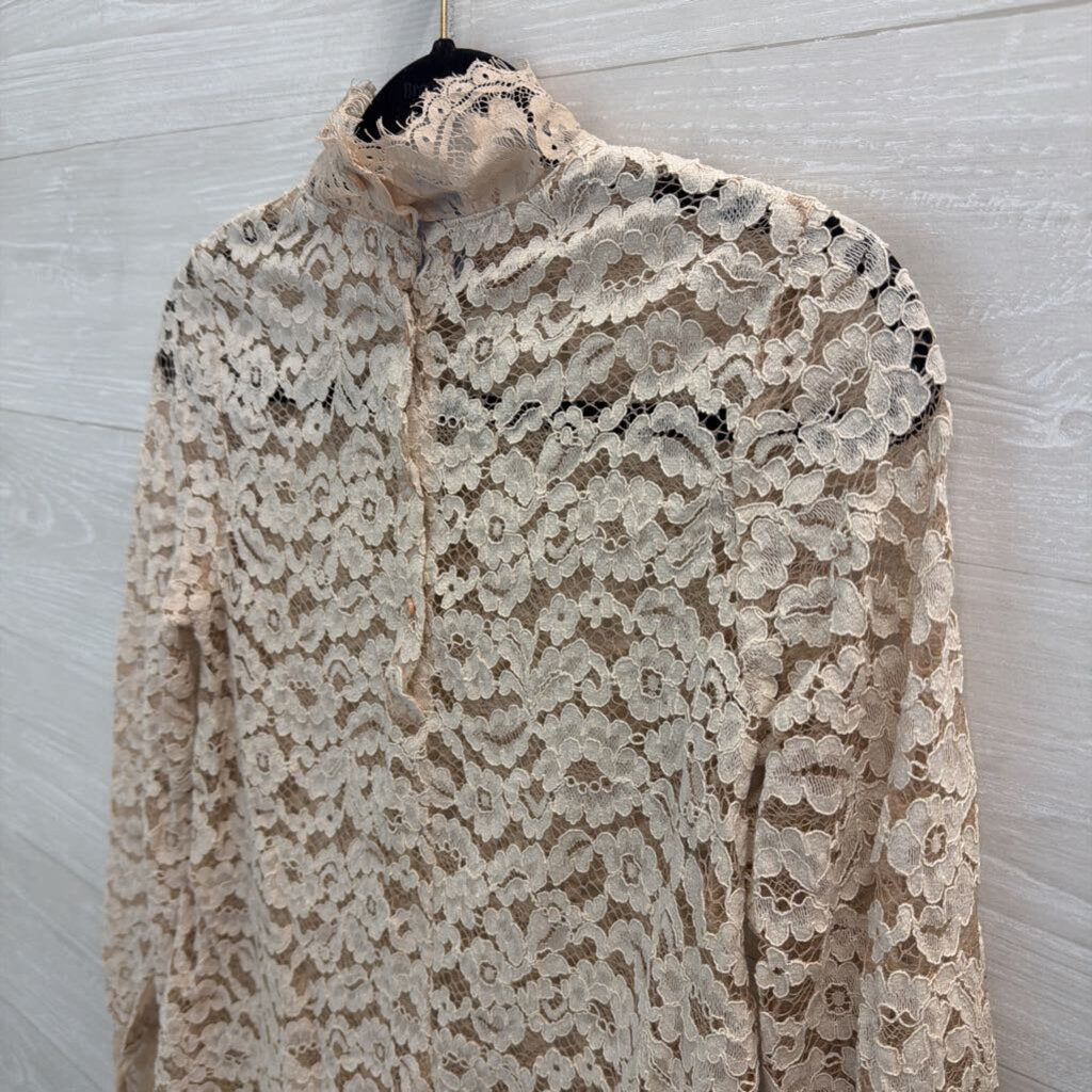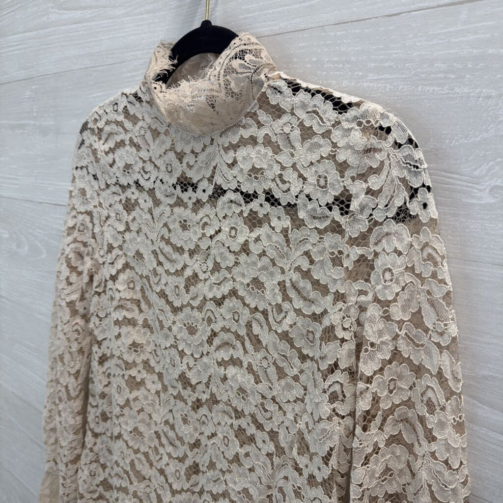 Cream Sheer Lace Long Sleeve Mock Neck Top Small