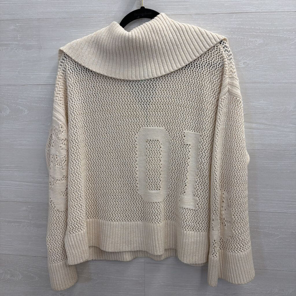 Daily Practice Cream Open Knit Half Zip Pullover Large