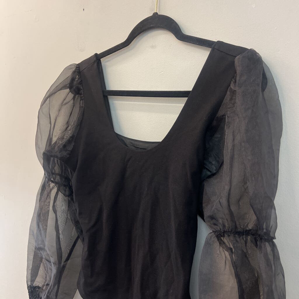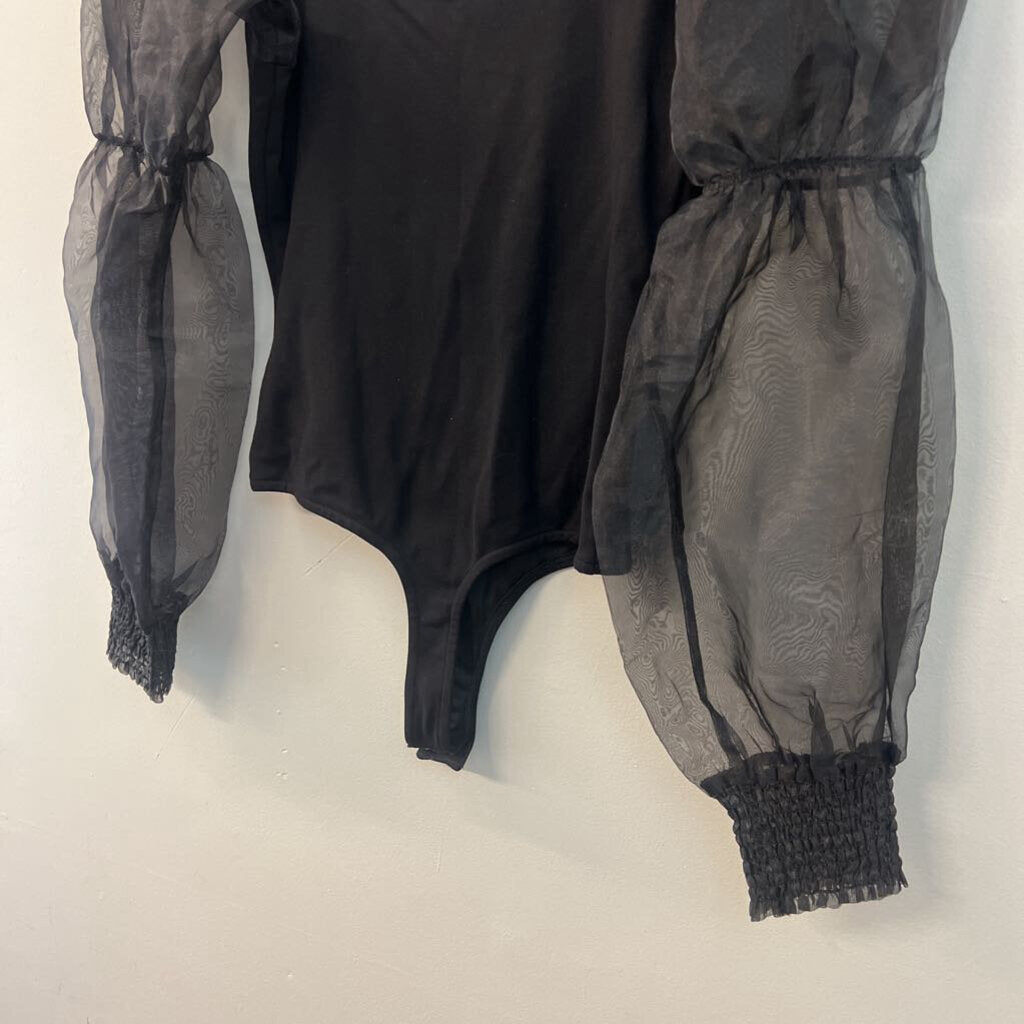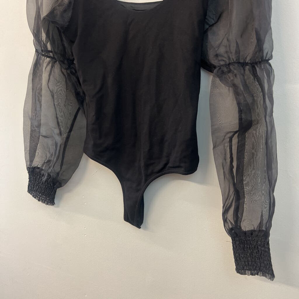 Dance and Marvel Black Sheer Puff Sleeve Bodysuit Small