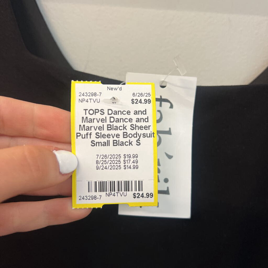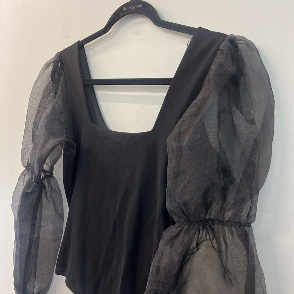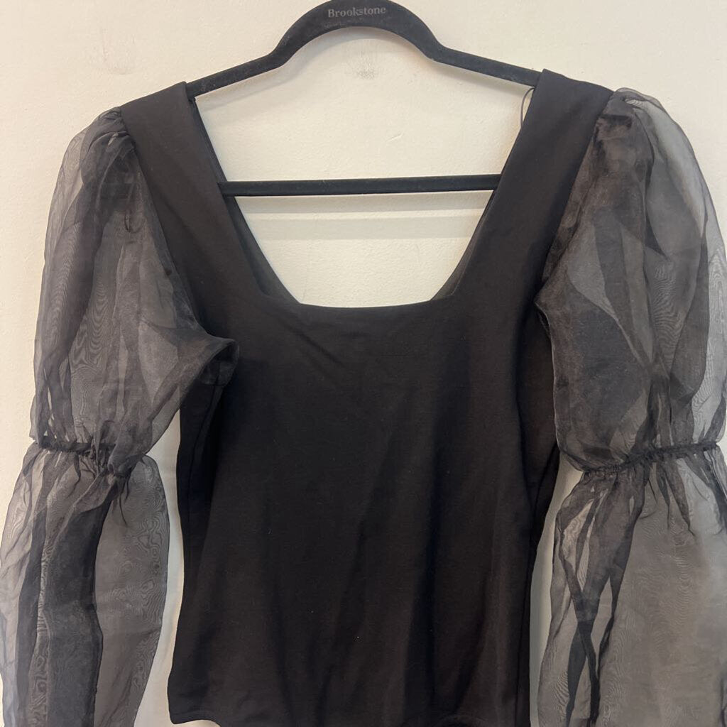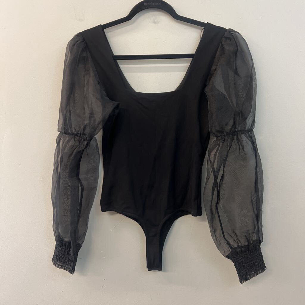 Dance and Marvel Black Sheer Puff Sleeve Bodysuit Small
