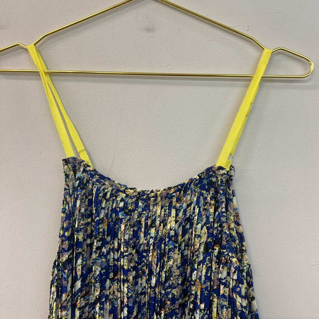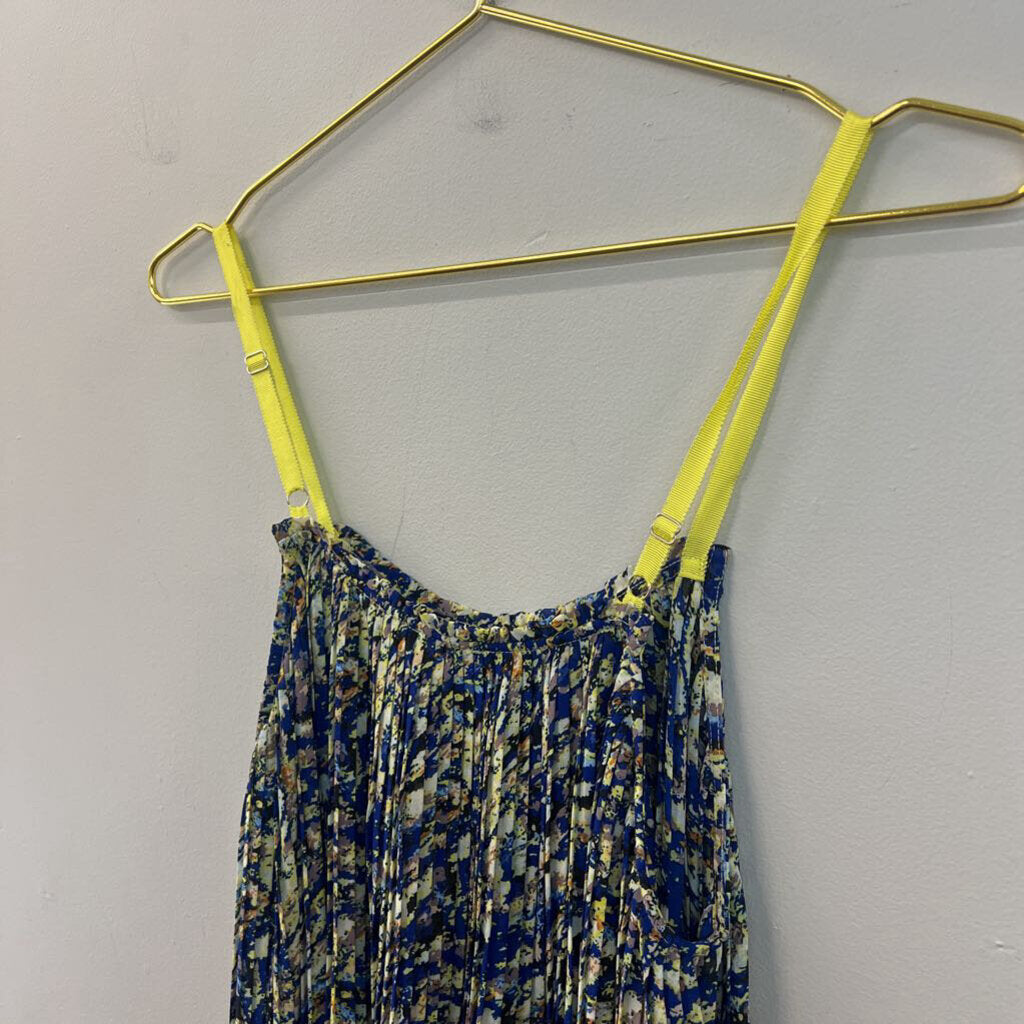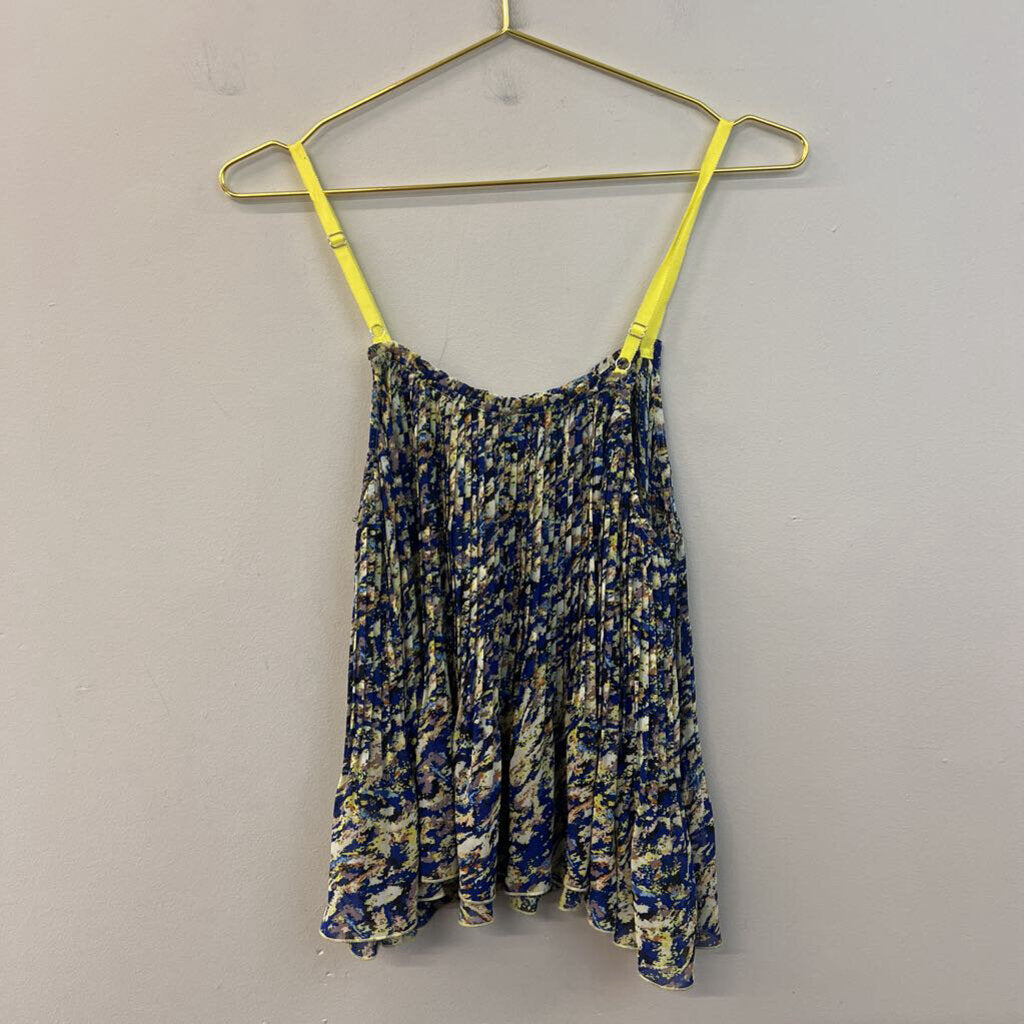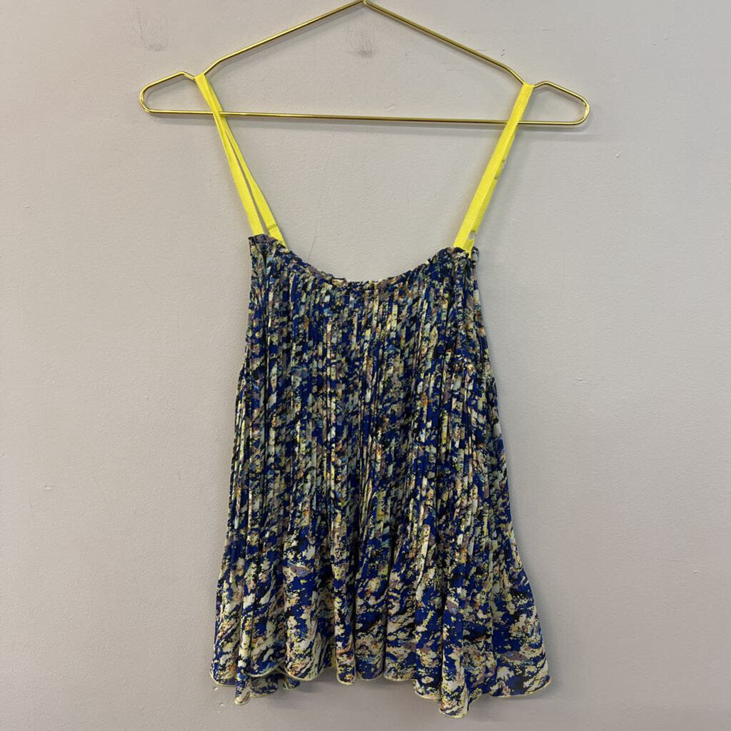 Dance in Paris Blue/ Yellow Print Pleated Tank Top Large