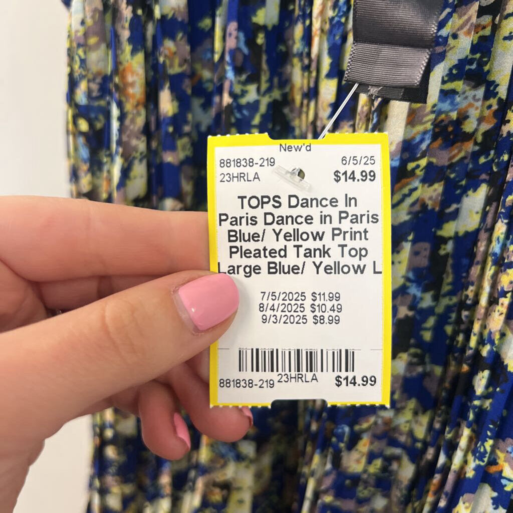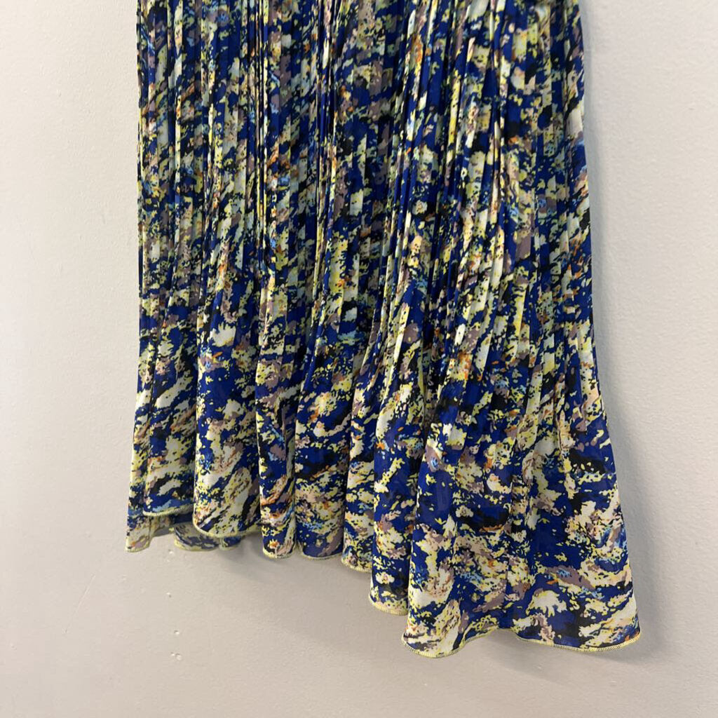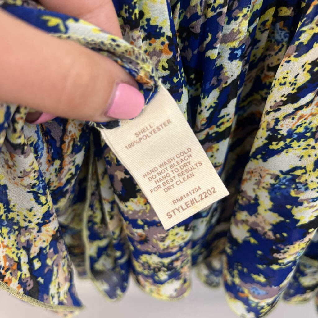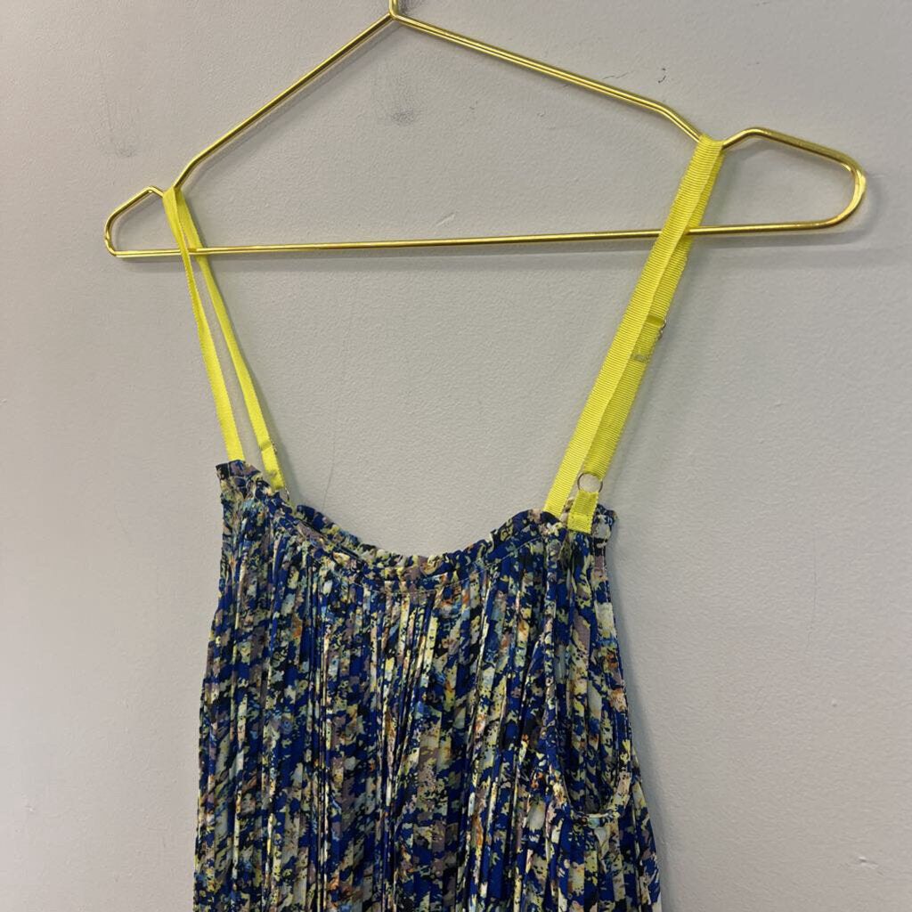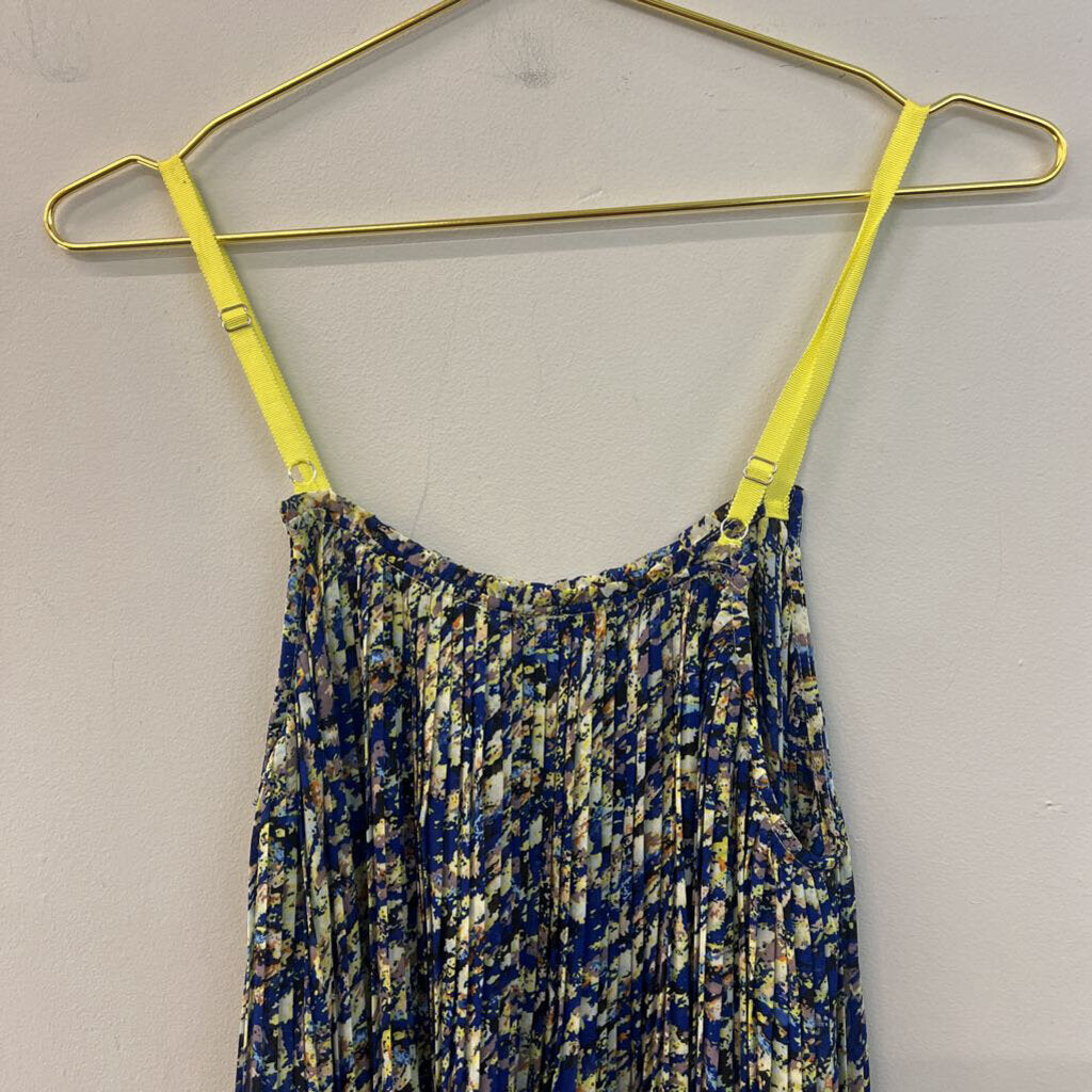 Dance in Paris Blue/ Yellow Print Pleated Tank Top Large