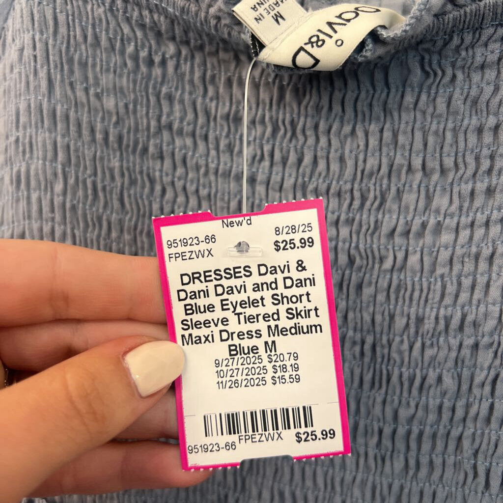 Davi and Dani Blue Eyelet Short Sleeve Tiered Skirt Maxi Dress Medium