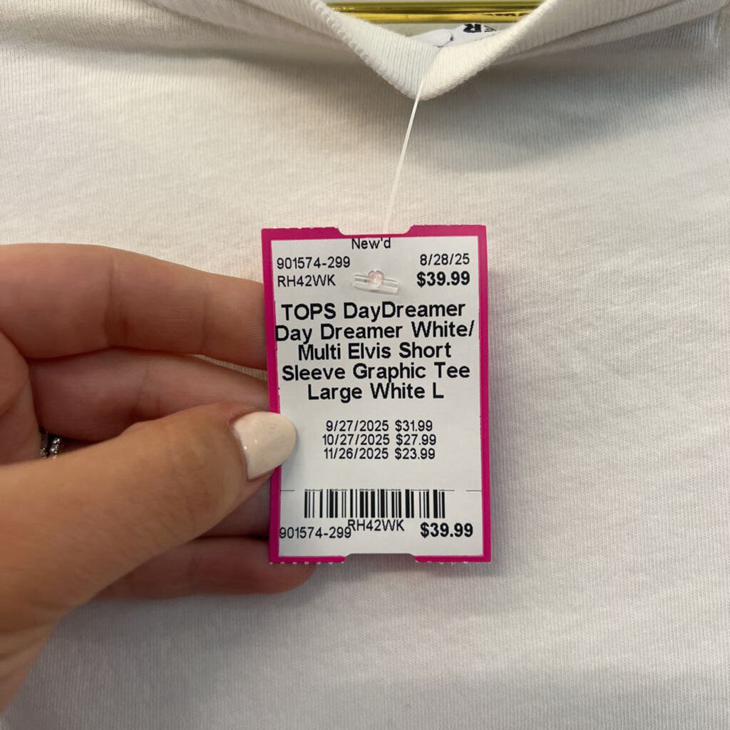 Day Dreamer White/ Multi Elvis Short Sleeve Graphic Tee Large
