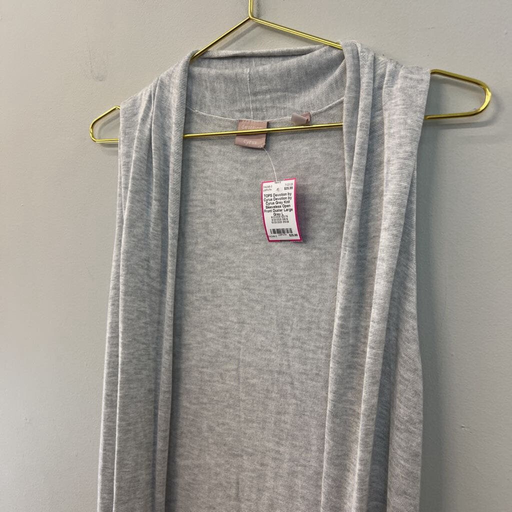 Devotion by Cyrus Grey Knit Sleeveless Open Front Duster Large