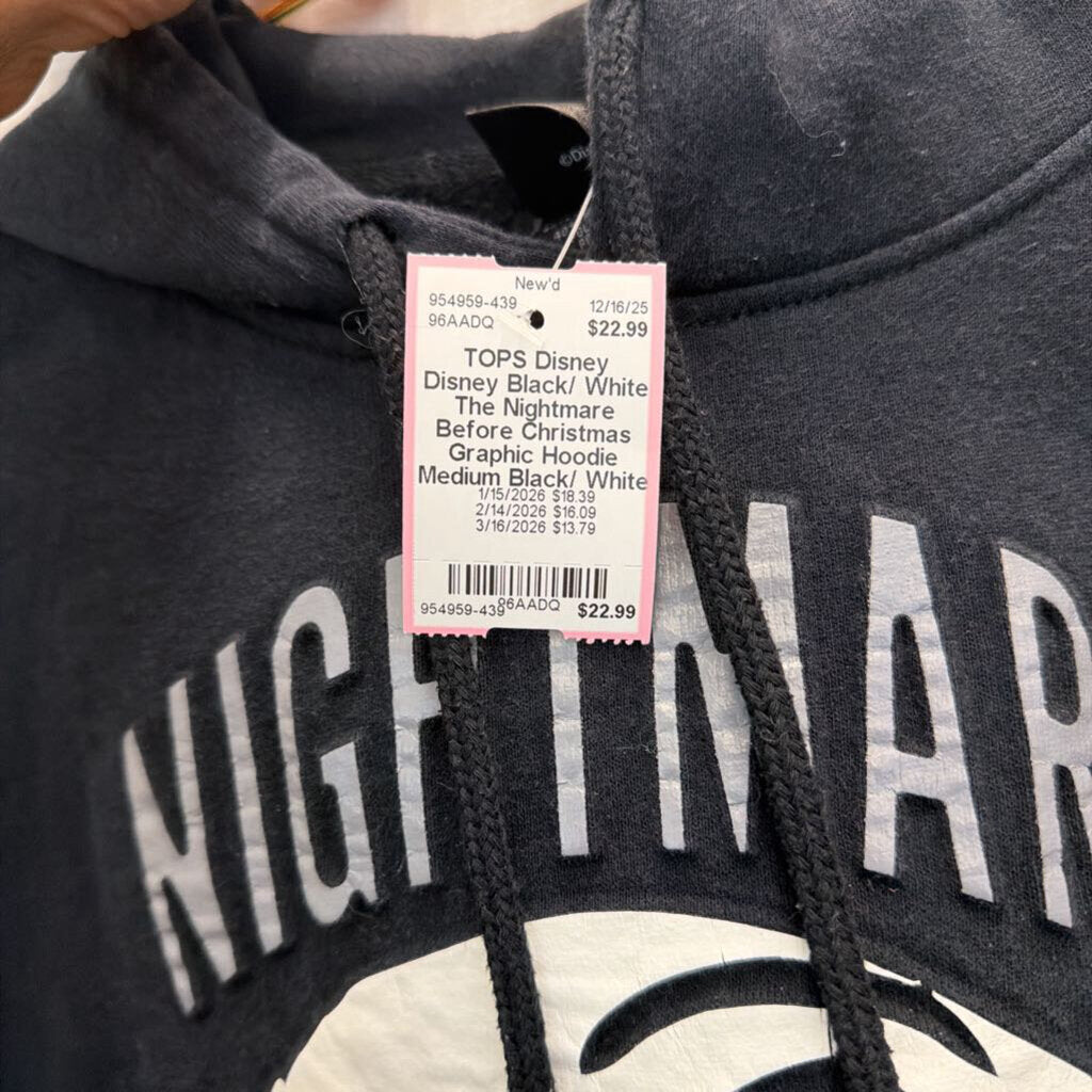 Disney Black/ White The Nightmare Before Christmas Graphic Hoodie Medium