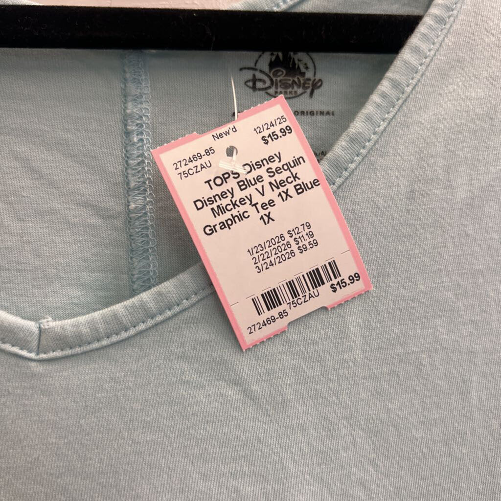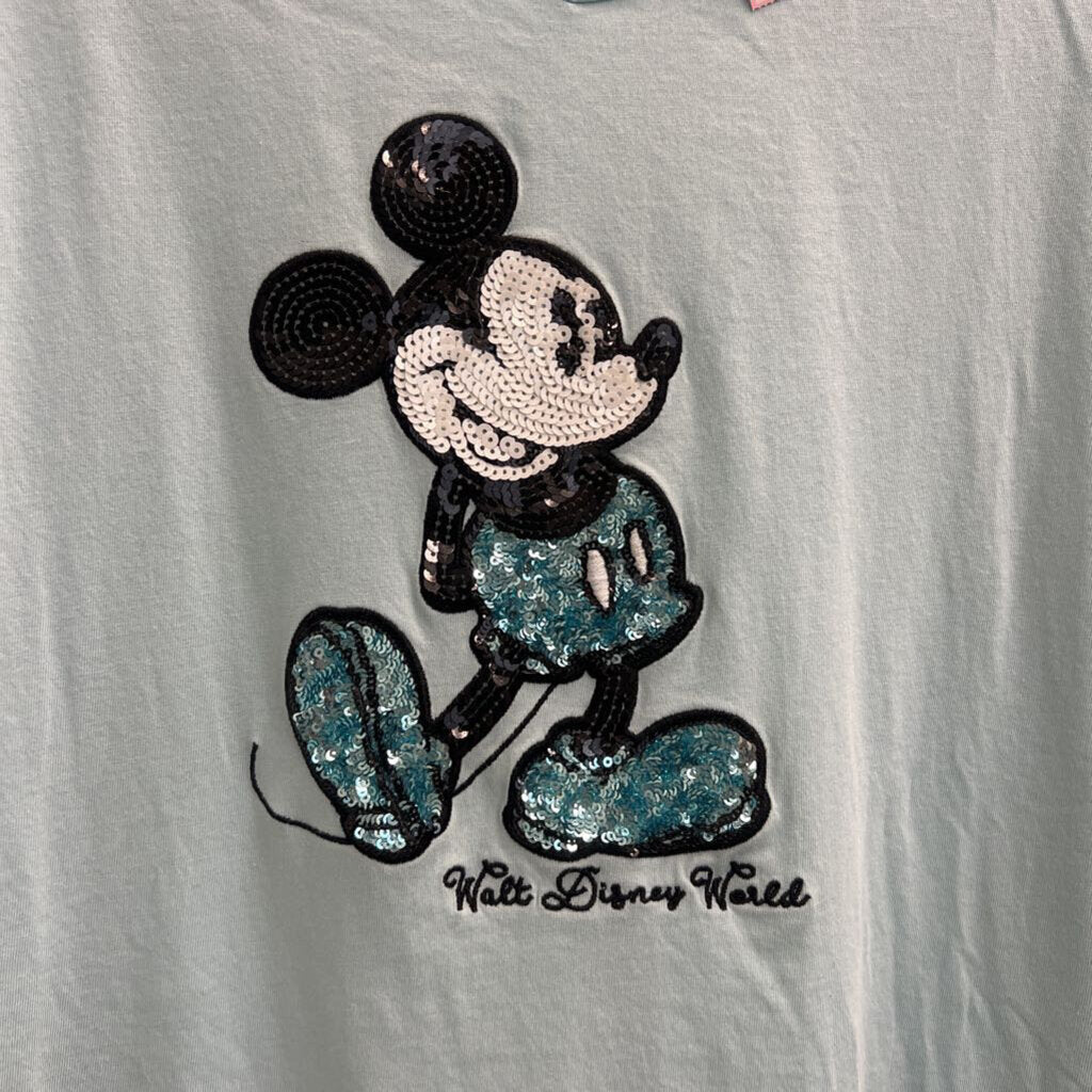 Disney Blue Sequin Mickey V Neck Graphic Tee 1X