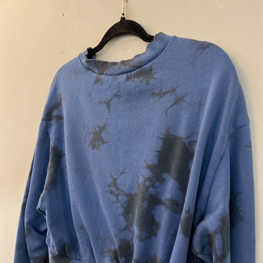 Divided Blue Tie Dye Love Cropped Pullover Medium