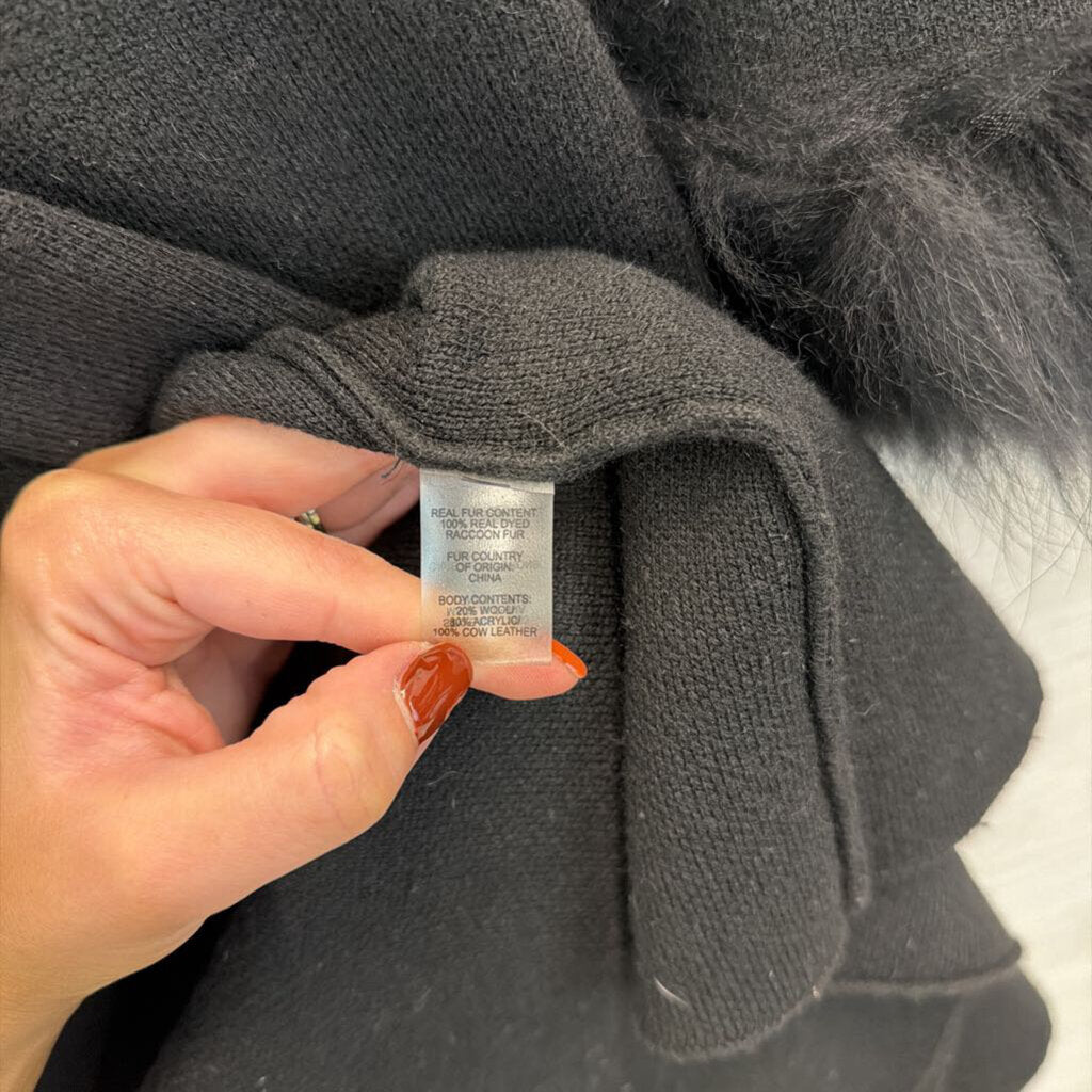 Dolce Cabo Black Fur Lined Trim Wrap Jacket Top One Size