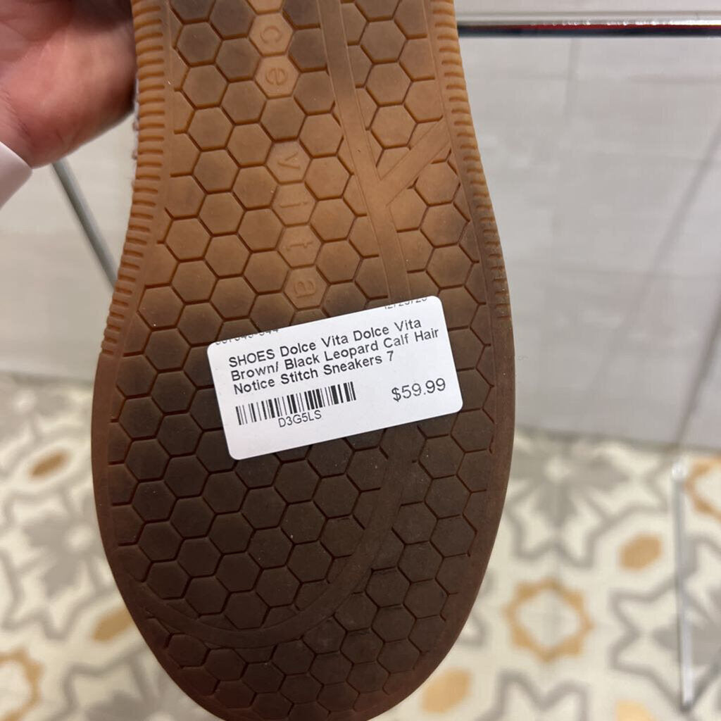 Dolce Vita Brown/ Black Leopard Calf Hair Notice Stitch Sneakers 7