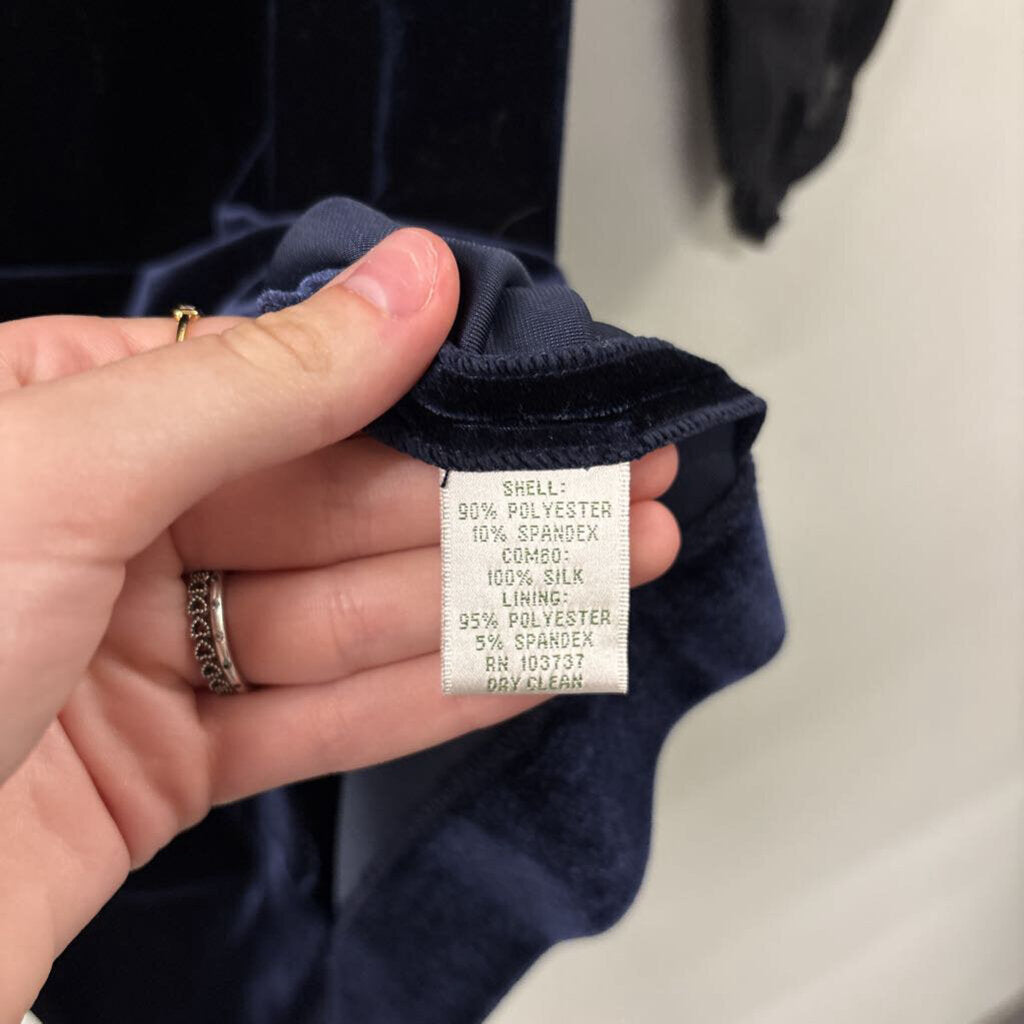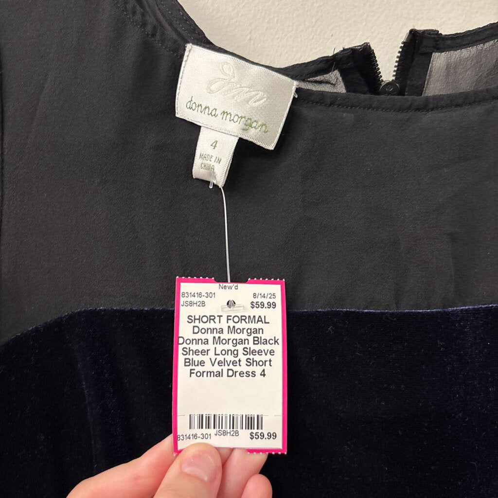 Donna Morgan Black Sheer Long Sleeve Blue Velvet Short Formal Dress 4