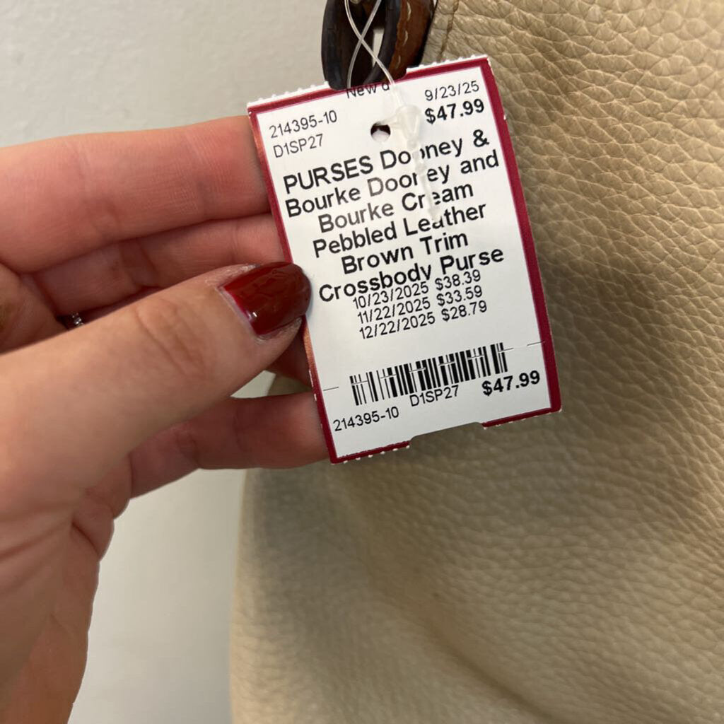 Dooney and Bourke Cream Pebbled Leather Brown Trim Crossbody Purse
