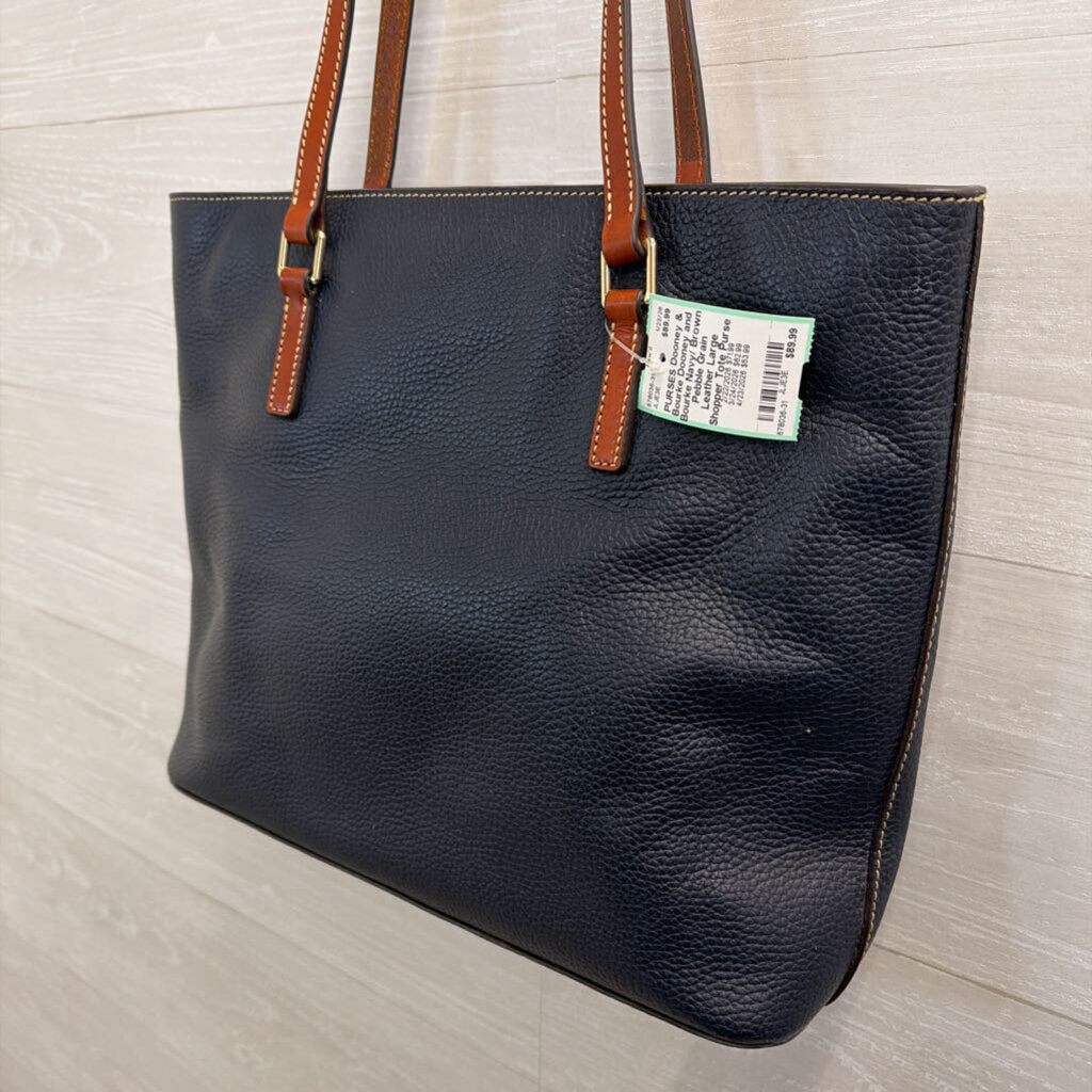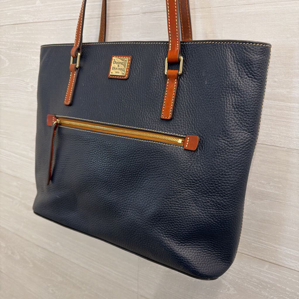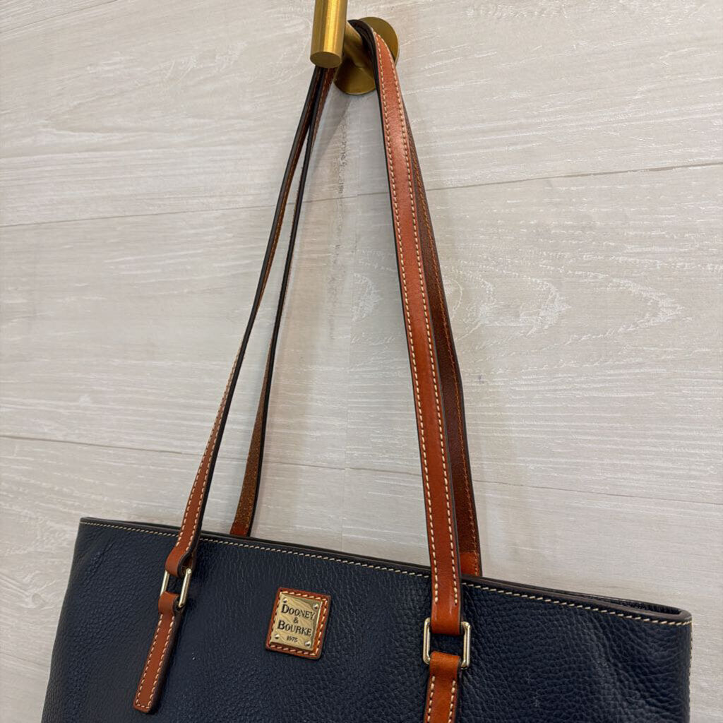 Dooney and Bourke Navy/ Brown Pebble Grain Leather Large Shopper Tote Purse