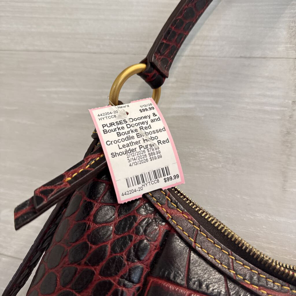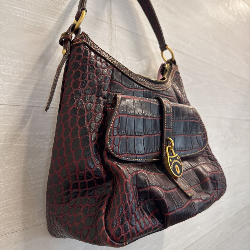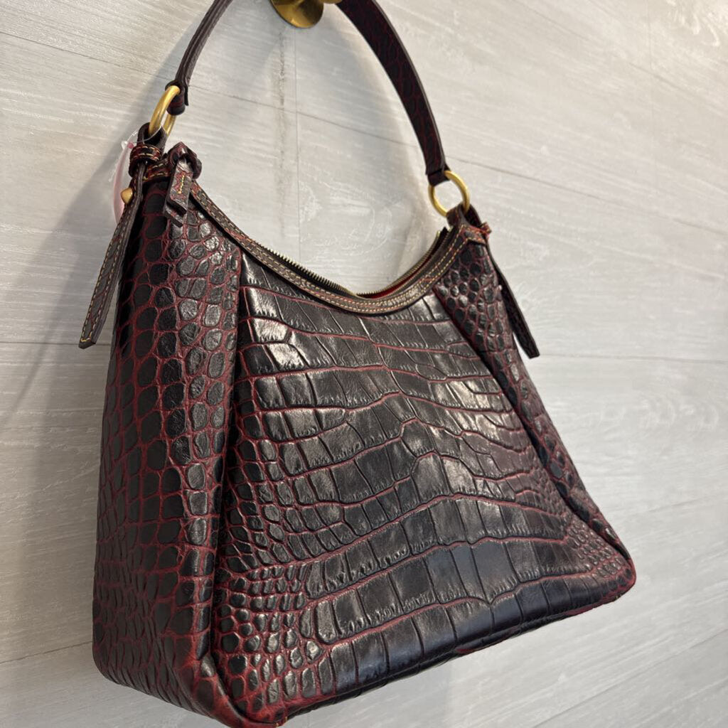 Dooney and Bourke Red Crocodile Embossed Leather Hobo Shoulder Purse