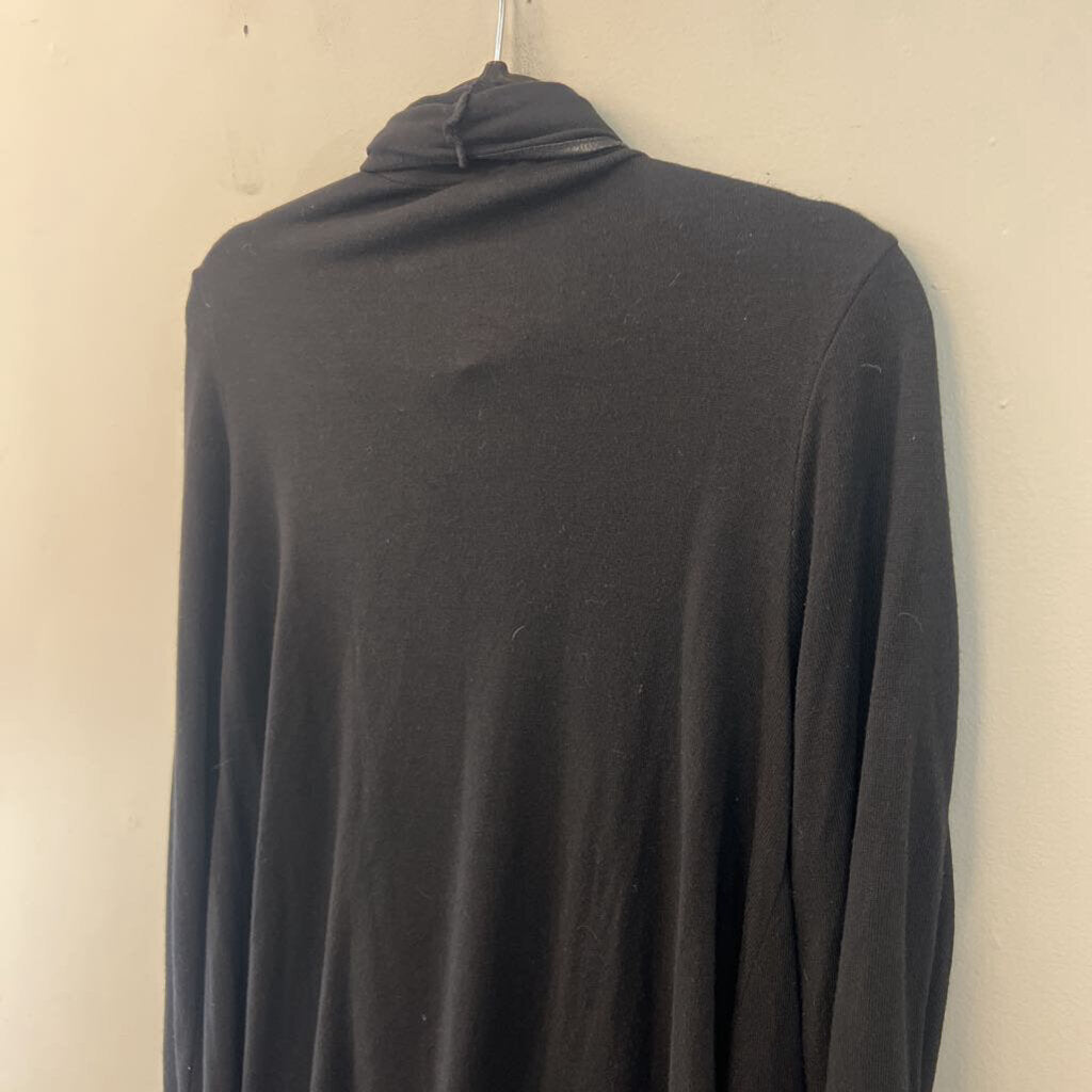 Double Zero Black Leather Detail Long Sleeve Open Front Sweater Top Large