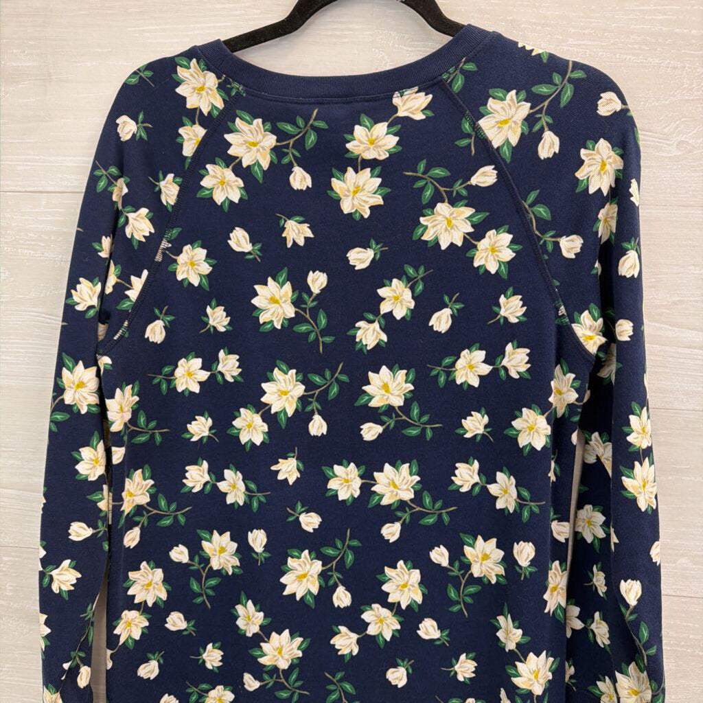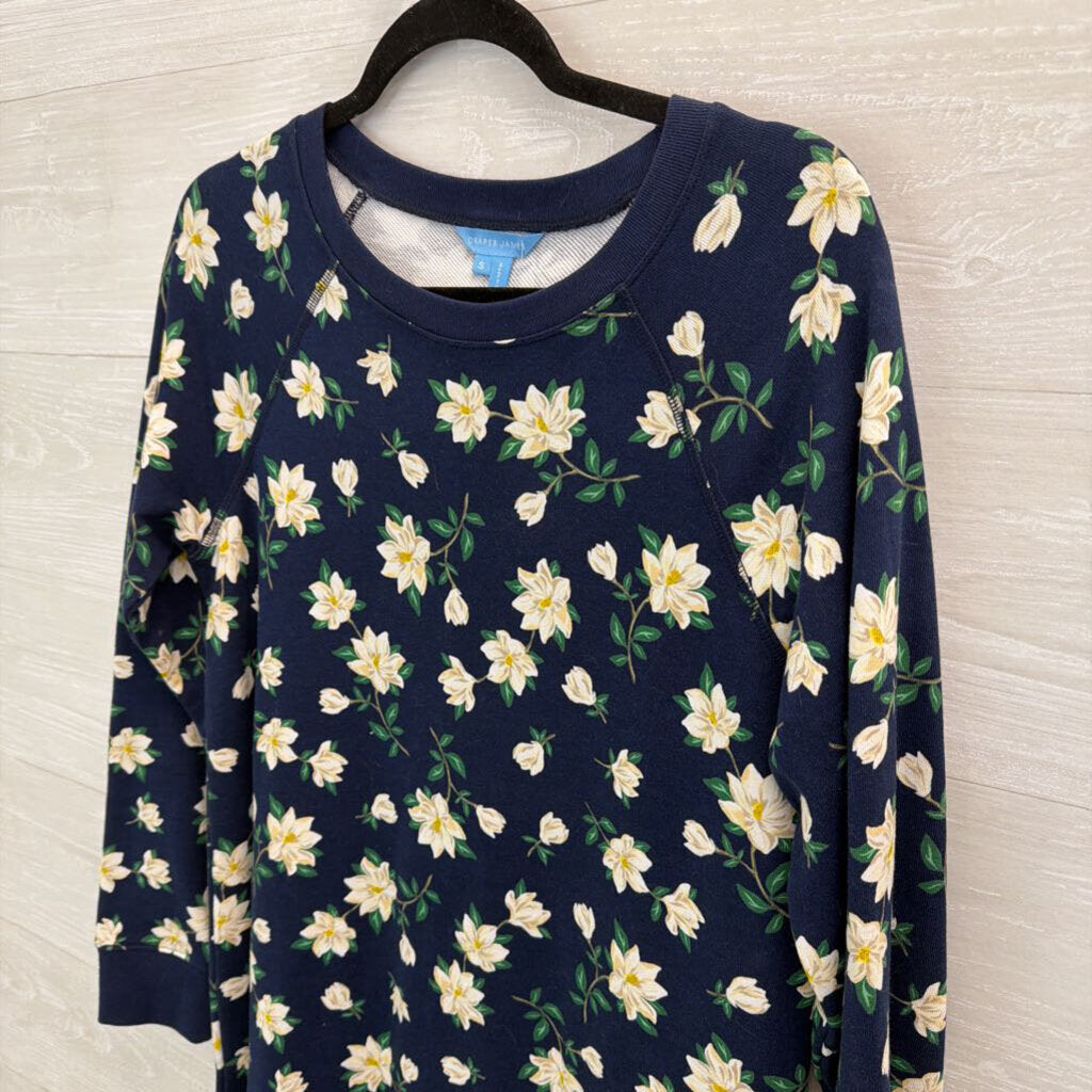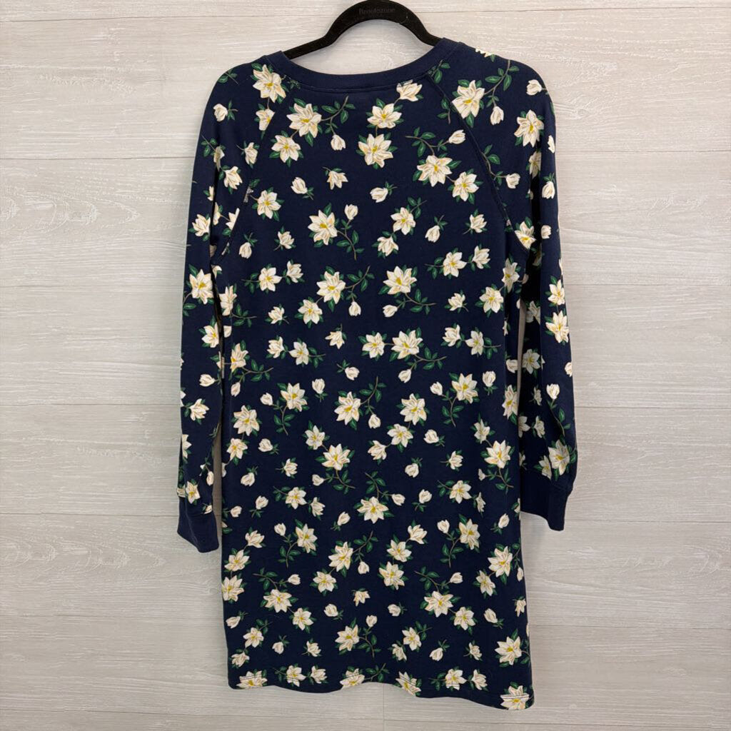 Draper James Navy/ White Flower Print Long Sleeve Sweatshirt Dress Small