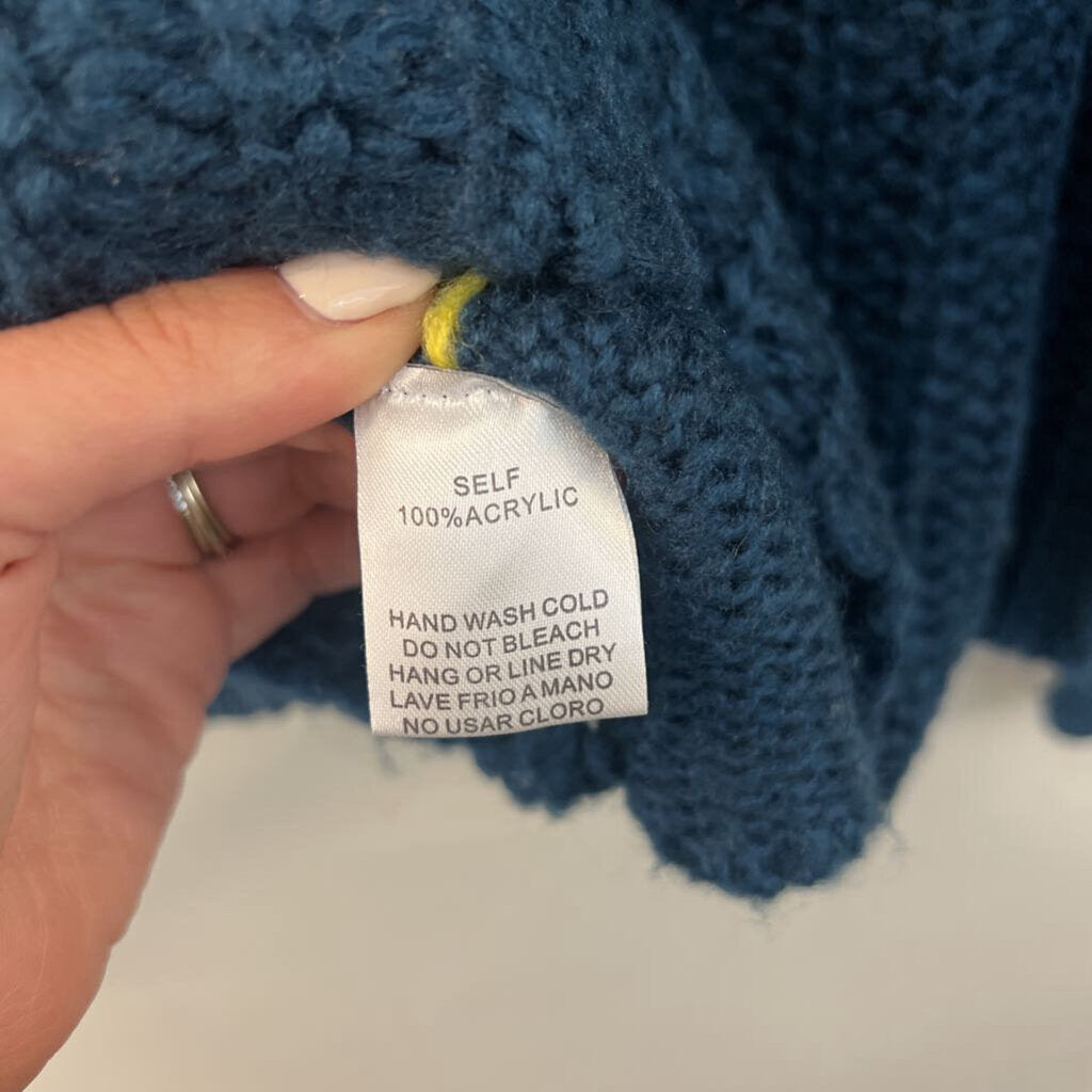 Easel Blue/ Yellow/ Grey Print Knit Long Sleeve Sweater Top Small