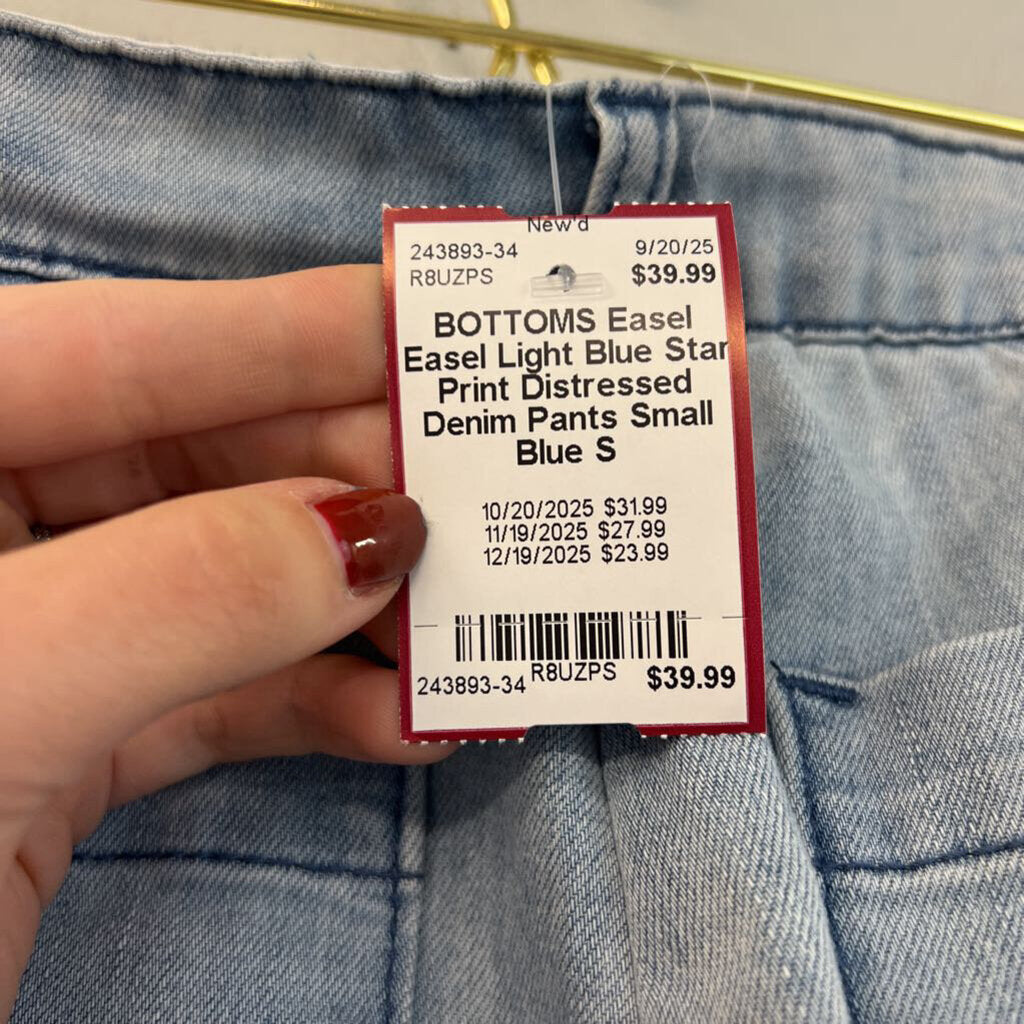 Easel Light Blue Star Print Distressed Denim Pants Small