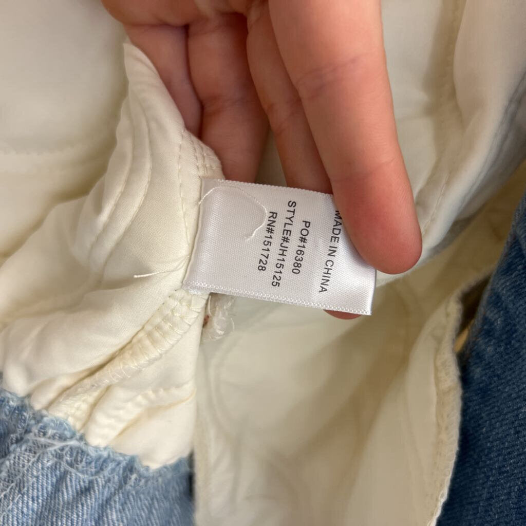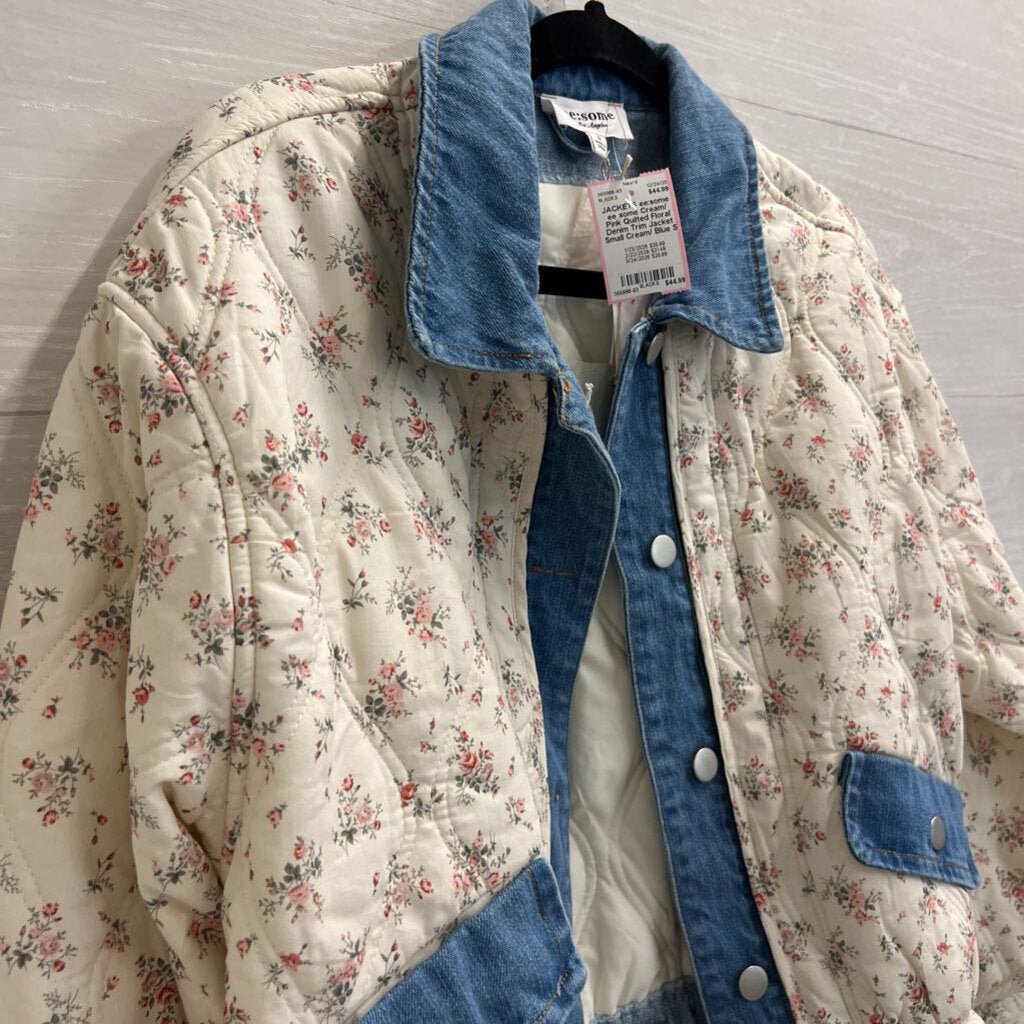 ee some Cream/ Pink Quilted Floral Denim Trim Jacket Small