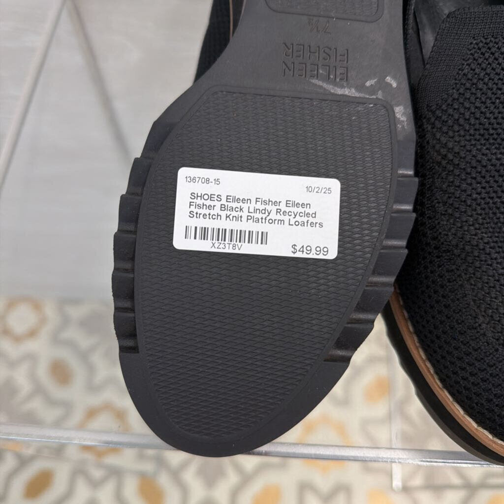 Eileen Fisher Black Lindy Recycled Stretch Knit Platform Loafers 7.5