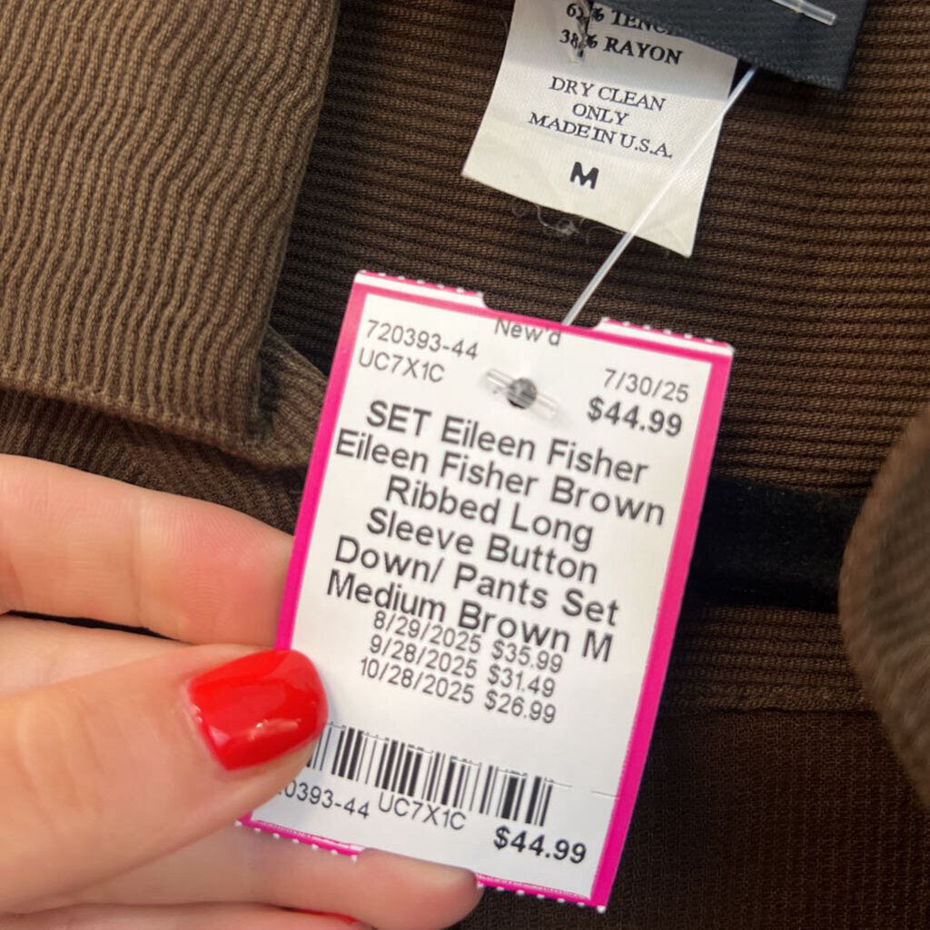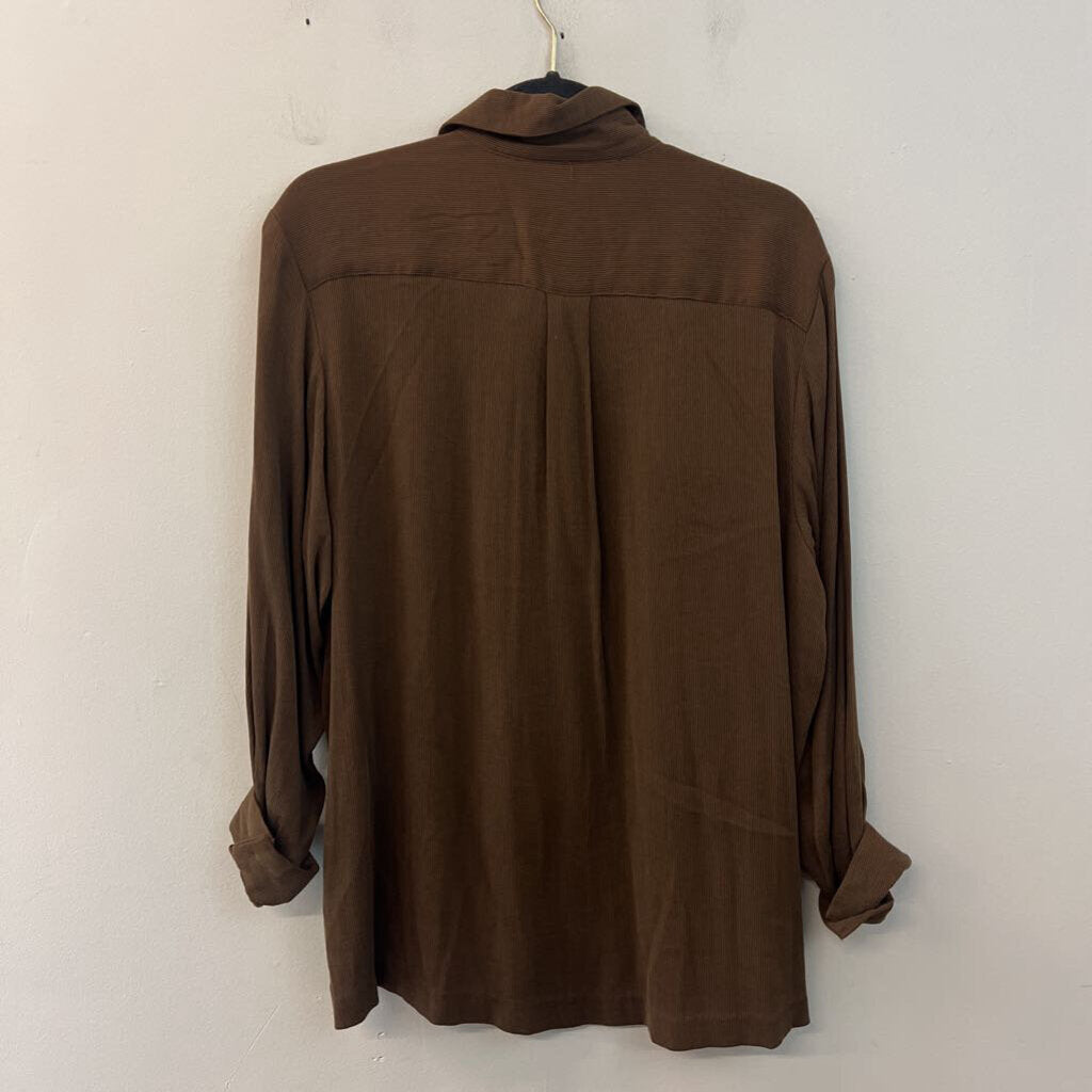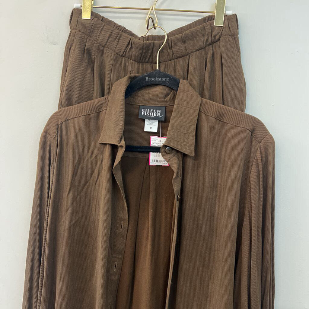 Eileen Fisher Brown Ribbed Long Sleeve Button Down/ Pants Set Medium