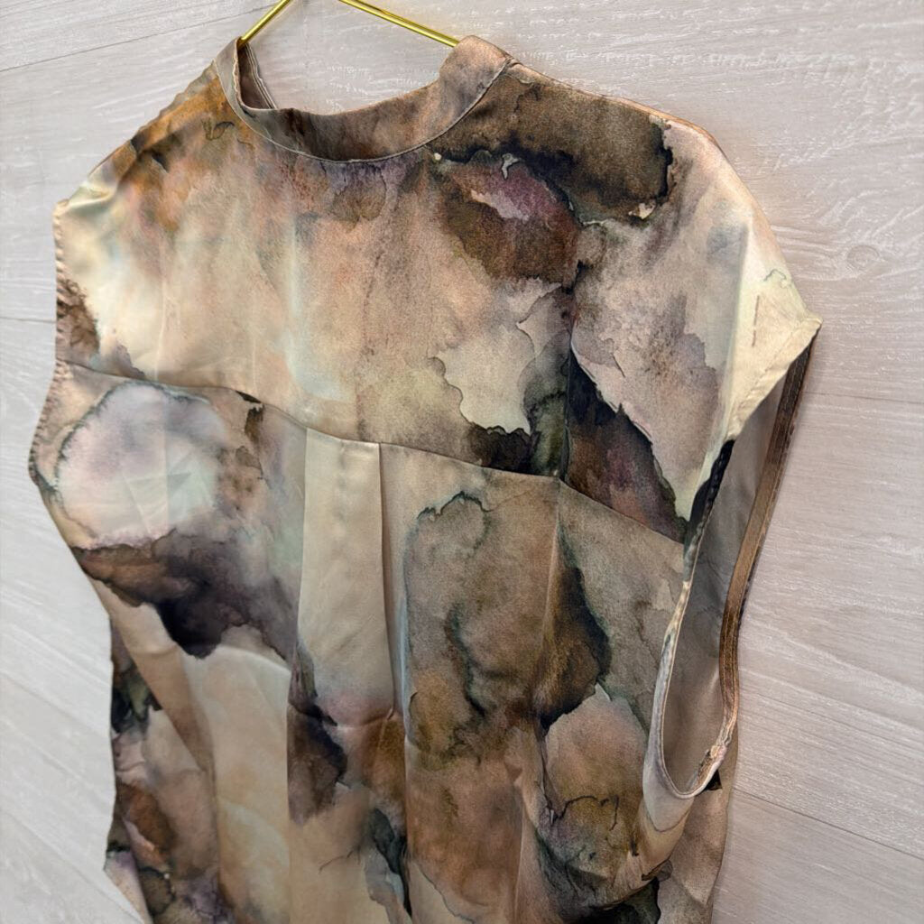 Elie Tahari Green/ Multi Print Silky Short Sleeve Button Down Top Small