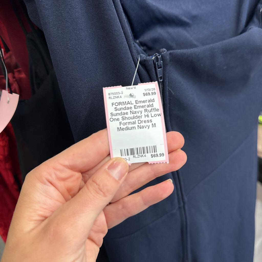 Emerald Sundae Navy Ruffle One Shoulder Hi Low Formal Dress Medium