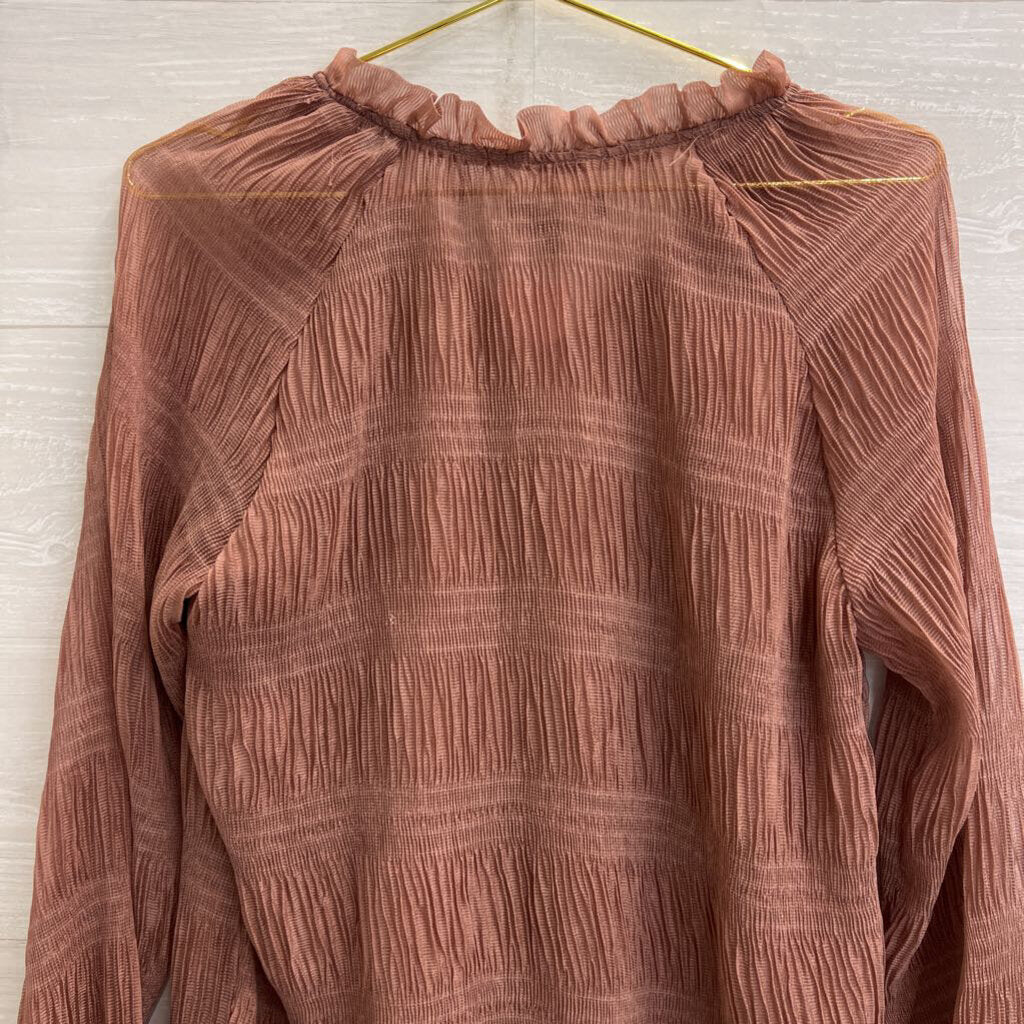 En Saison Mauve Textured Smocked Long Sleeve Top Small