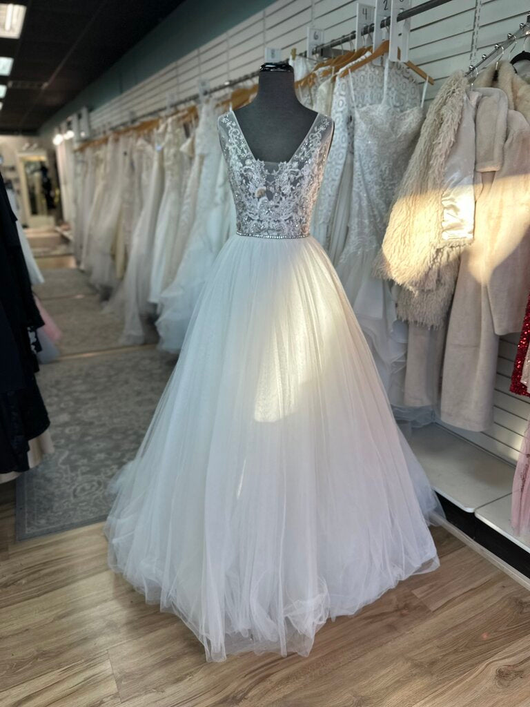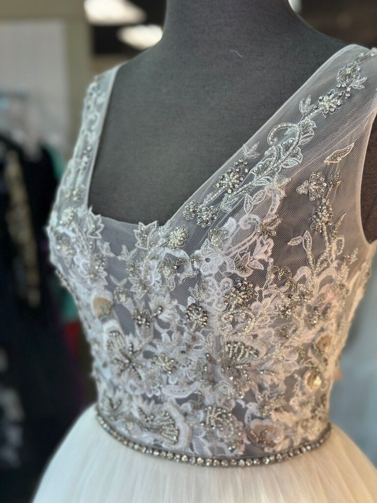 Enzoani Ivory/ Silver Beaded Top Tulle Skirt Bridal Gown 10