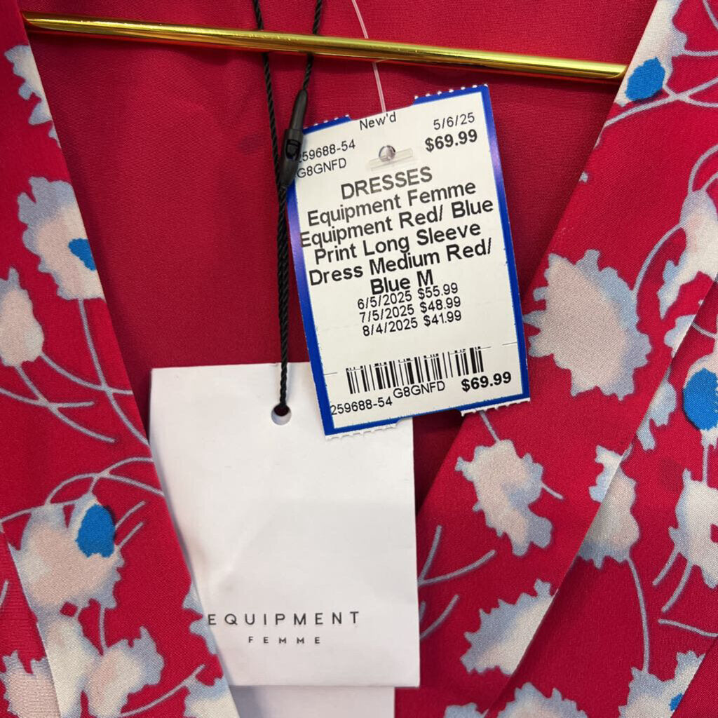 Equipment Red/ Blue Print Long Sleeve Dress Medium
